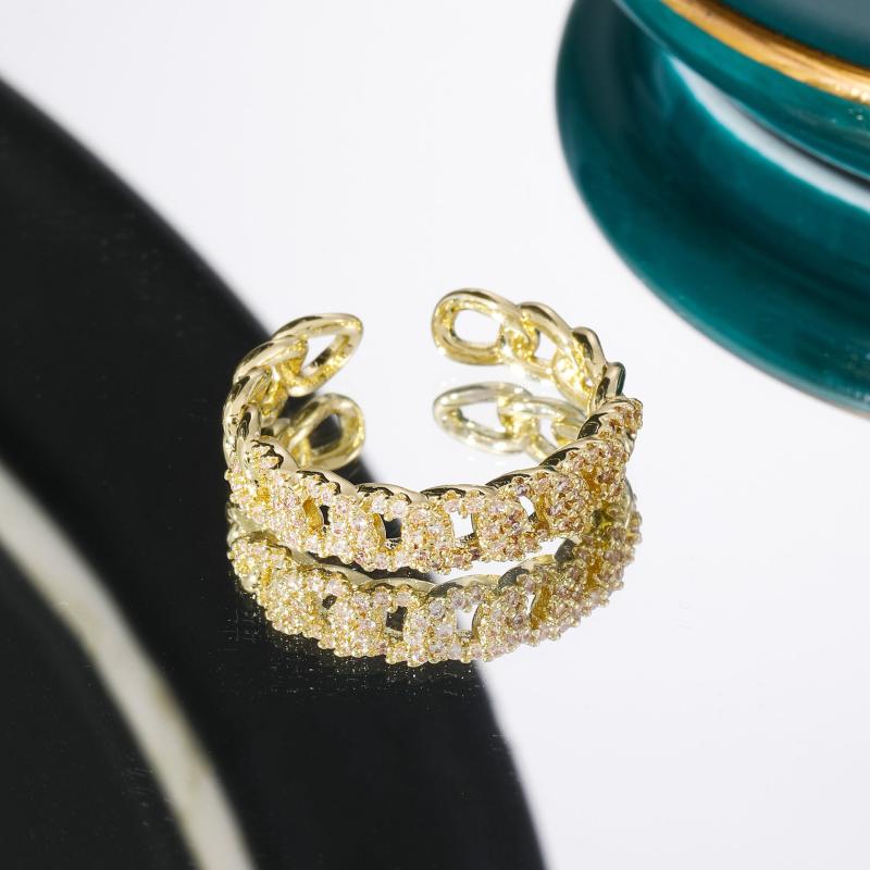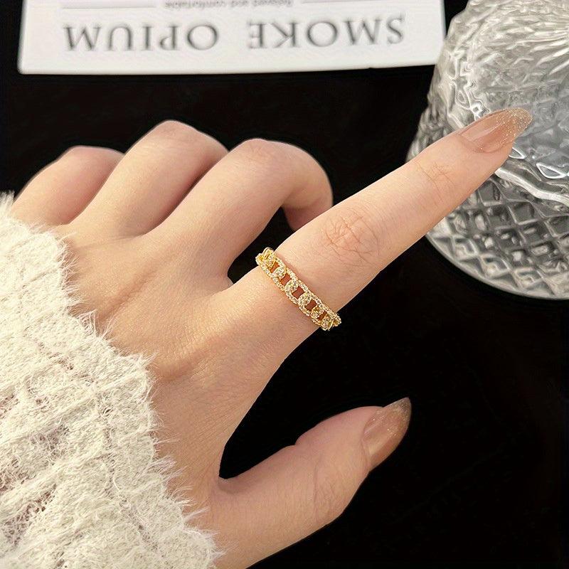 This vintage adjustable open ring features a synthetic chain link design with a February birthstone, plated in golden KC. It is a perfect gift for daily wear and special occasions.