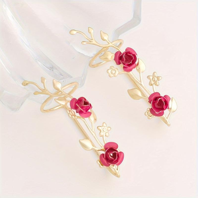 Elegant and stylish, this vintage-inspired camellia flower ring is made of zinc alloy and features a red floral design. Perfect for parties, banquets, and Valentine's Day.