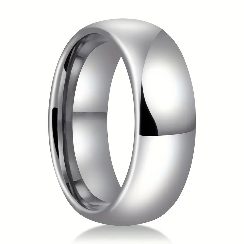 Add a touch of vintage charm to your look with this classic stainless steel ring. The 8mm band features a silvery glossy finish that is sure to make a statement.