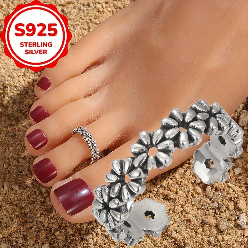 Enhance your vacation style with this sterling silver daisy flower foot ring. It's perfect for daily wear and makes a great gift for Valentine's Day.