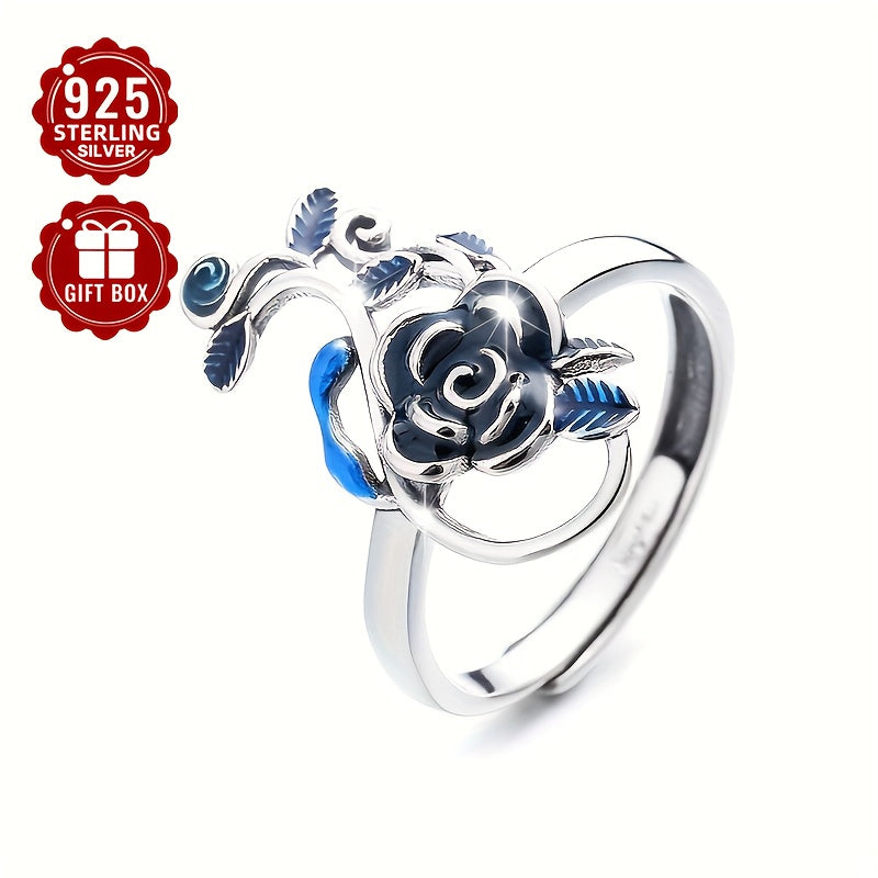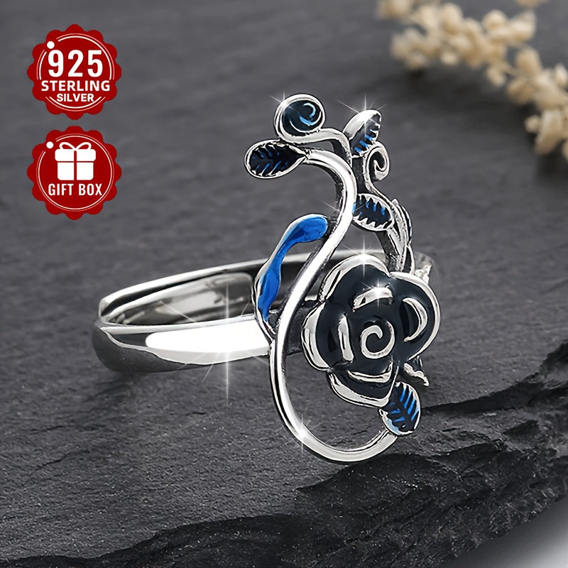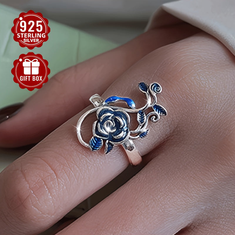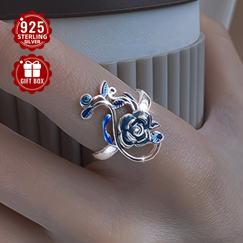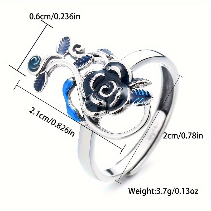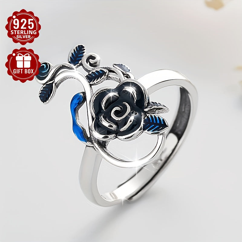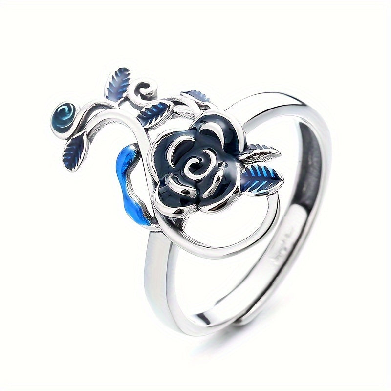 Elegant ring with a vintage French flair, featuring a solid 925 silver hollow rose design accented with glaze. Ideal for daily wear.