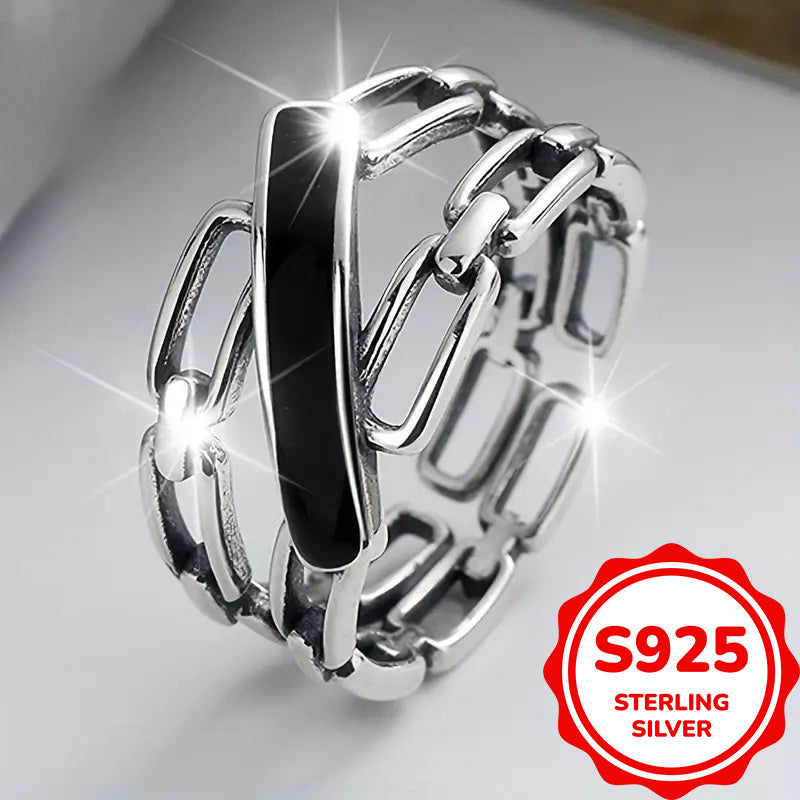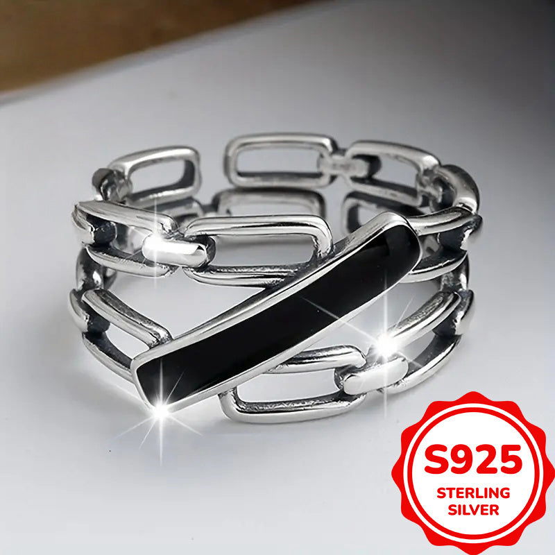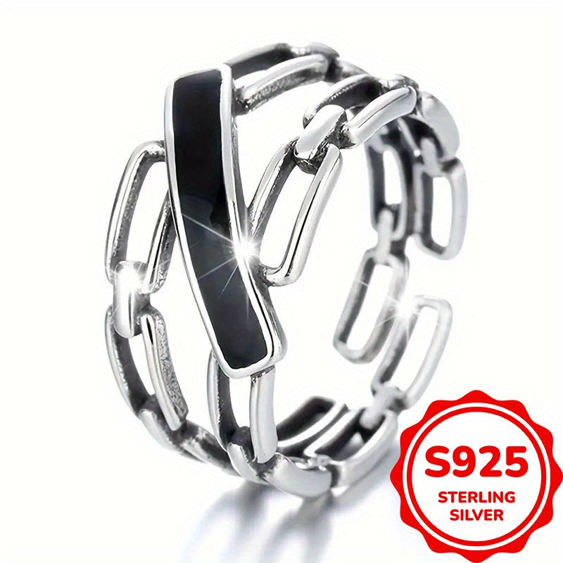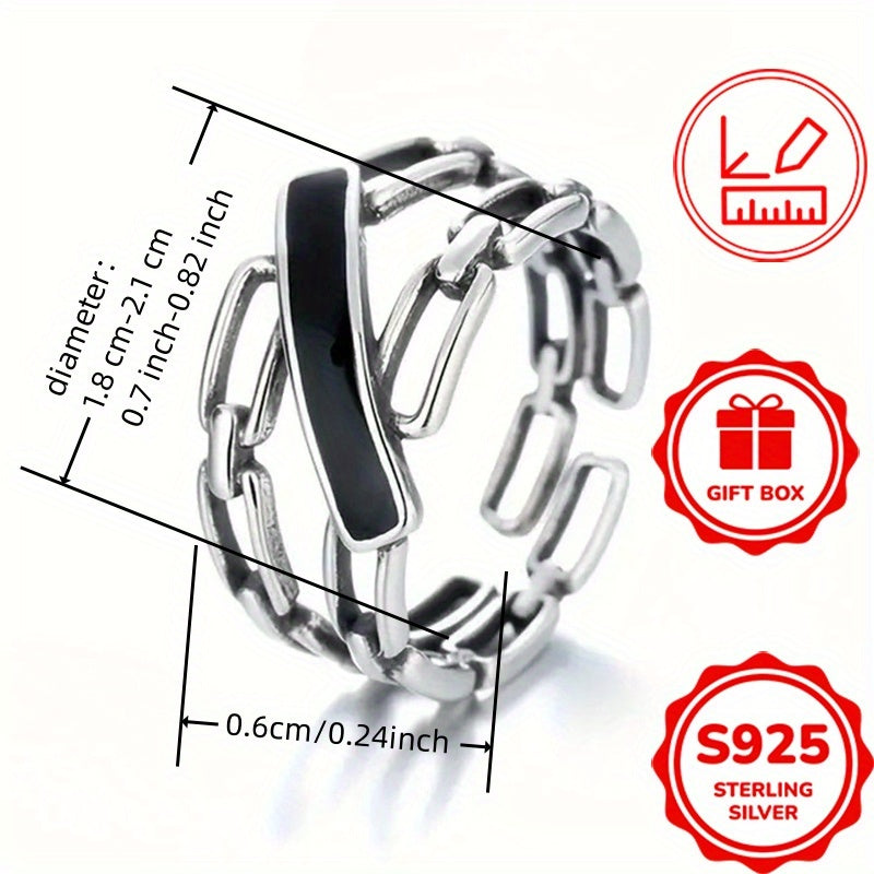 Elevate your style with this stunning vintage Gothic style 925 sterling silver open chain ring. Rhodium plated for a lasting shine, this reusable jewelry piece is suitable for daily wear and party occasions year-round.