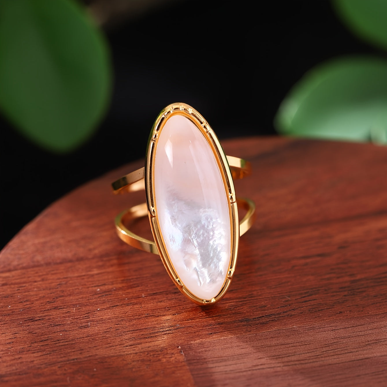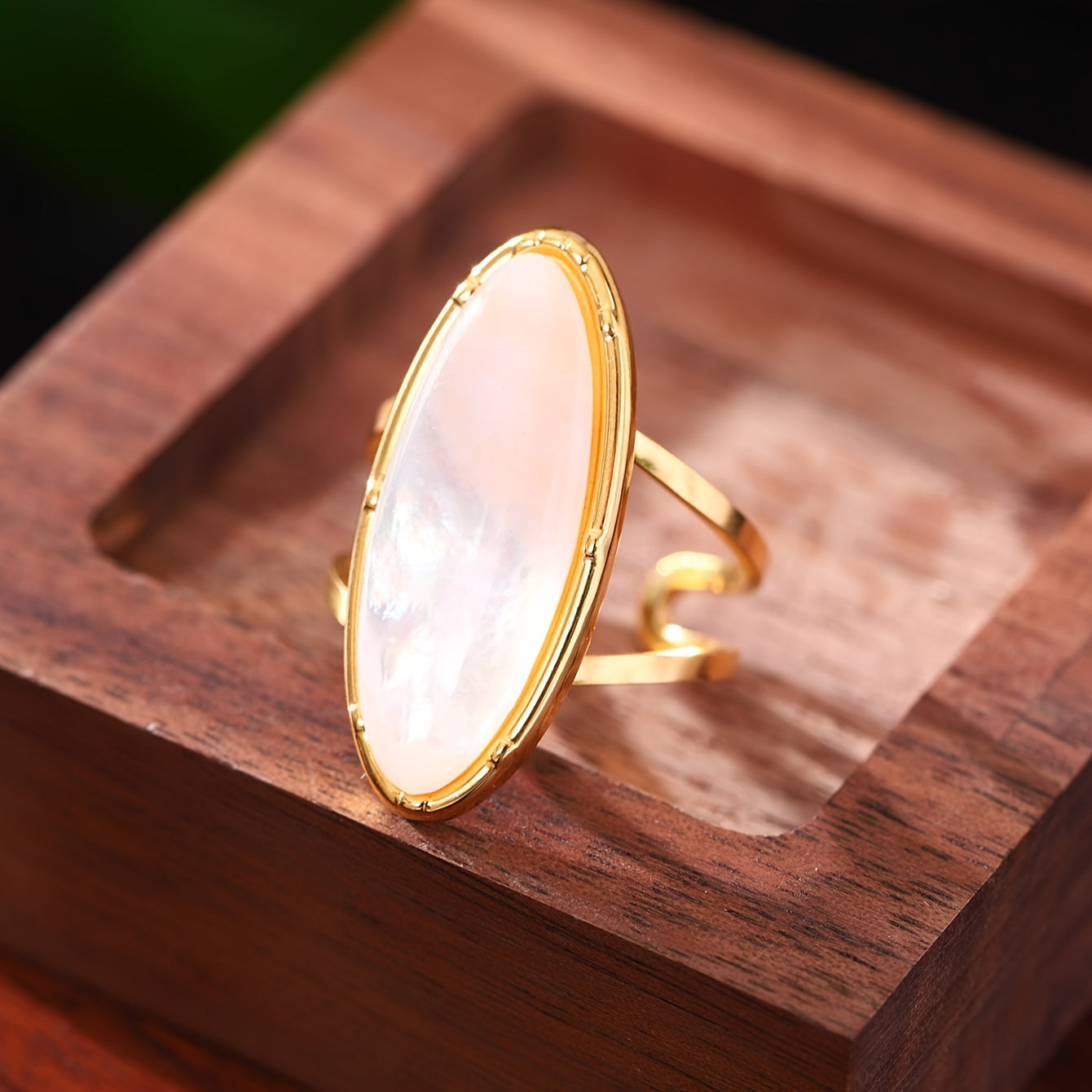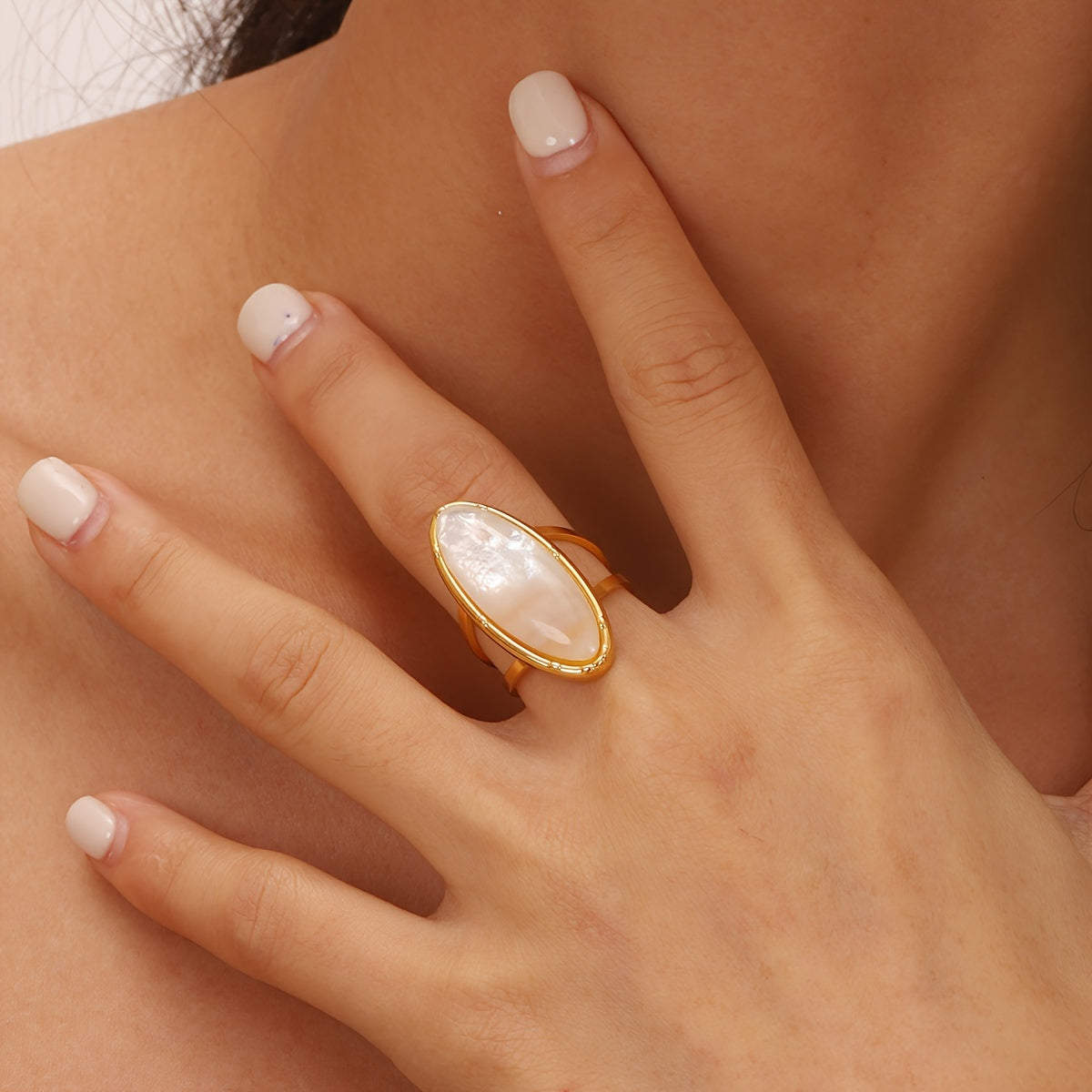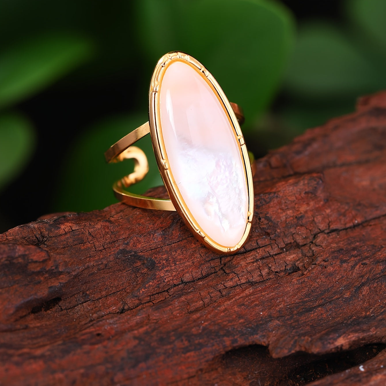 Vintage Open Cushion 18K Plated Stainless Steel Resin Inlay Ring