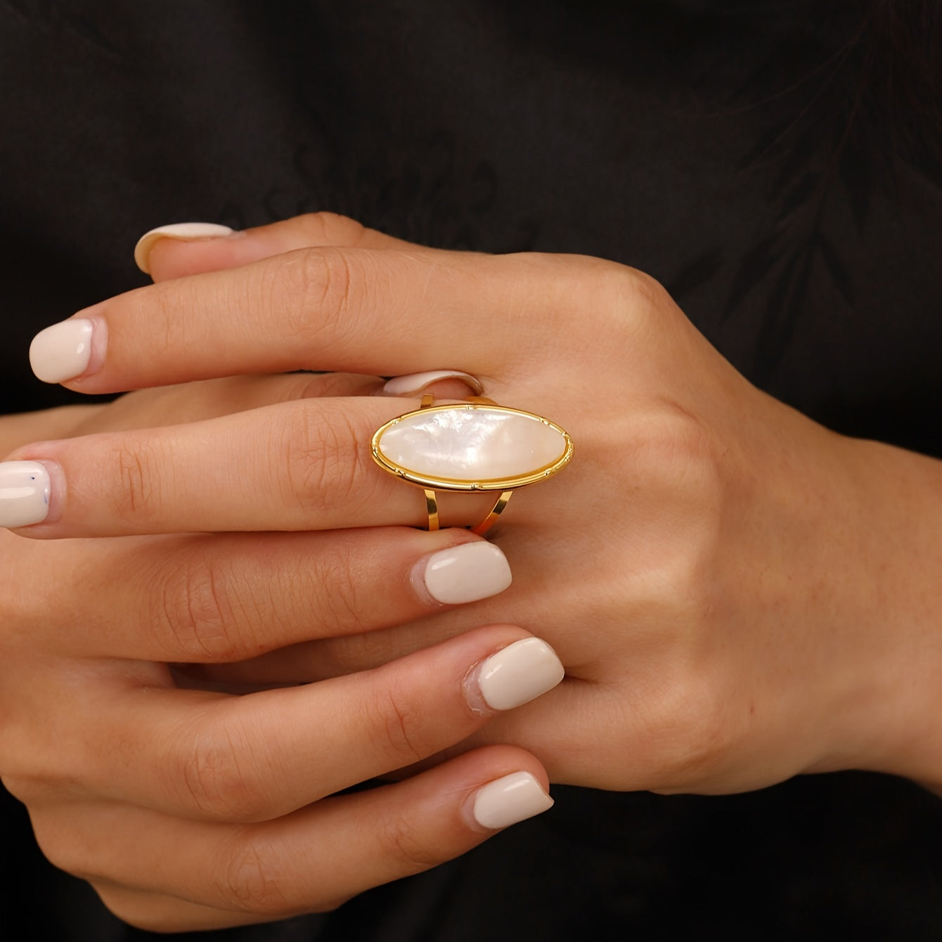 Elegant statement ring for women featuring a vintage open cushion design with 18K gold plating and resin inlay. Perfect for all season wear and makes a stylish gift for any holiday-themed occasion.