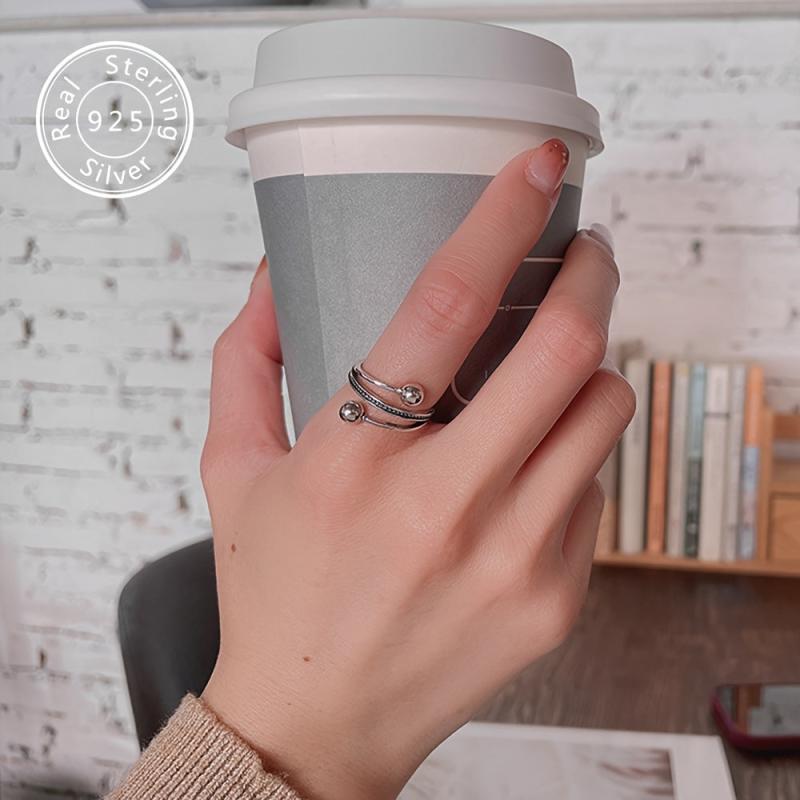Elevate your style with this unique sterling silver ring featuring multiple layers of irregular beads. Perfect for daily wear or parties.