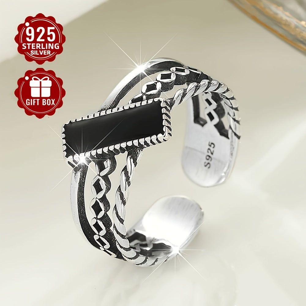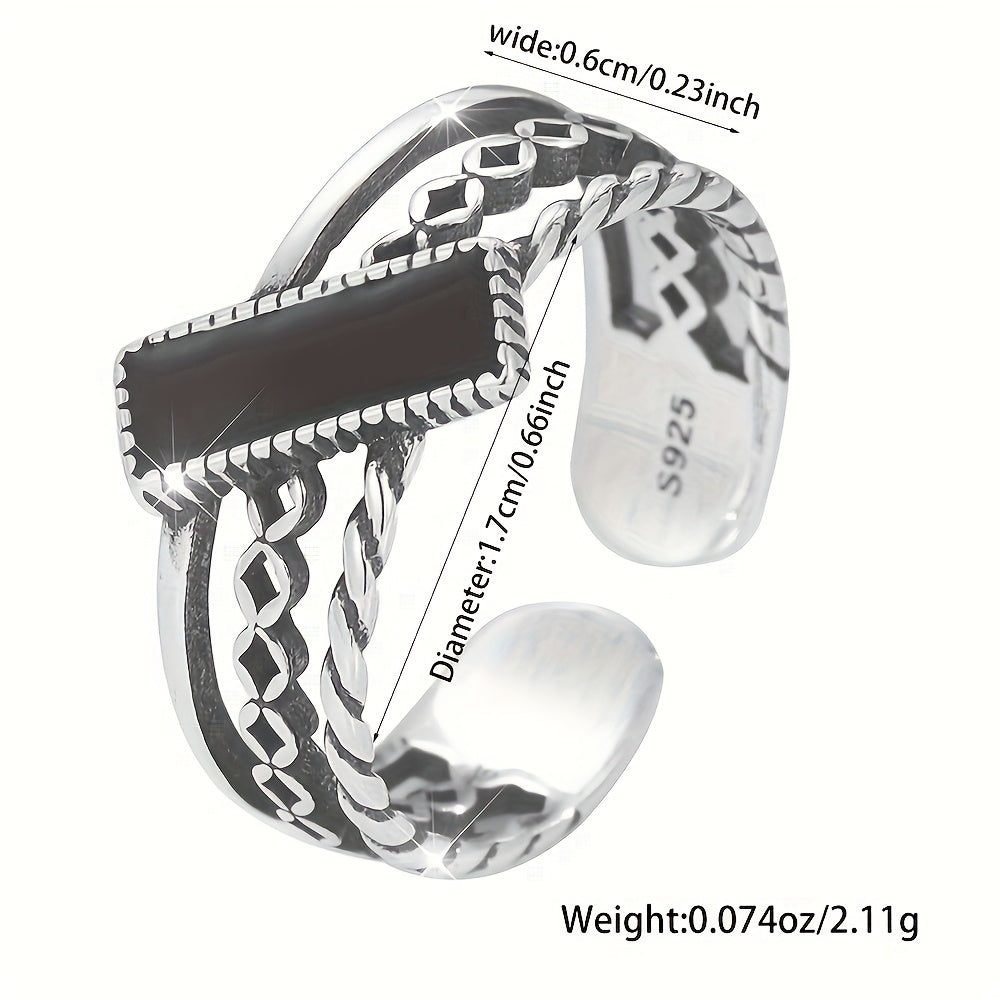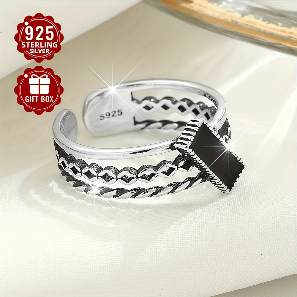 This exquisite open ring is crafted from pure S925 silver with a vintage rectangular design. Perfect for party activities, it also makes a great gift for family and friends.
