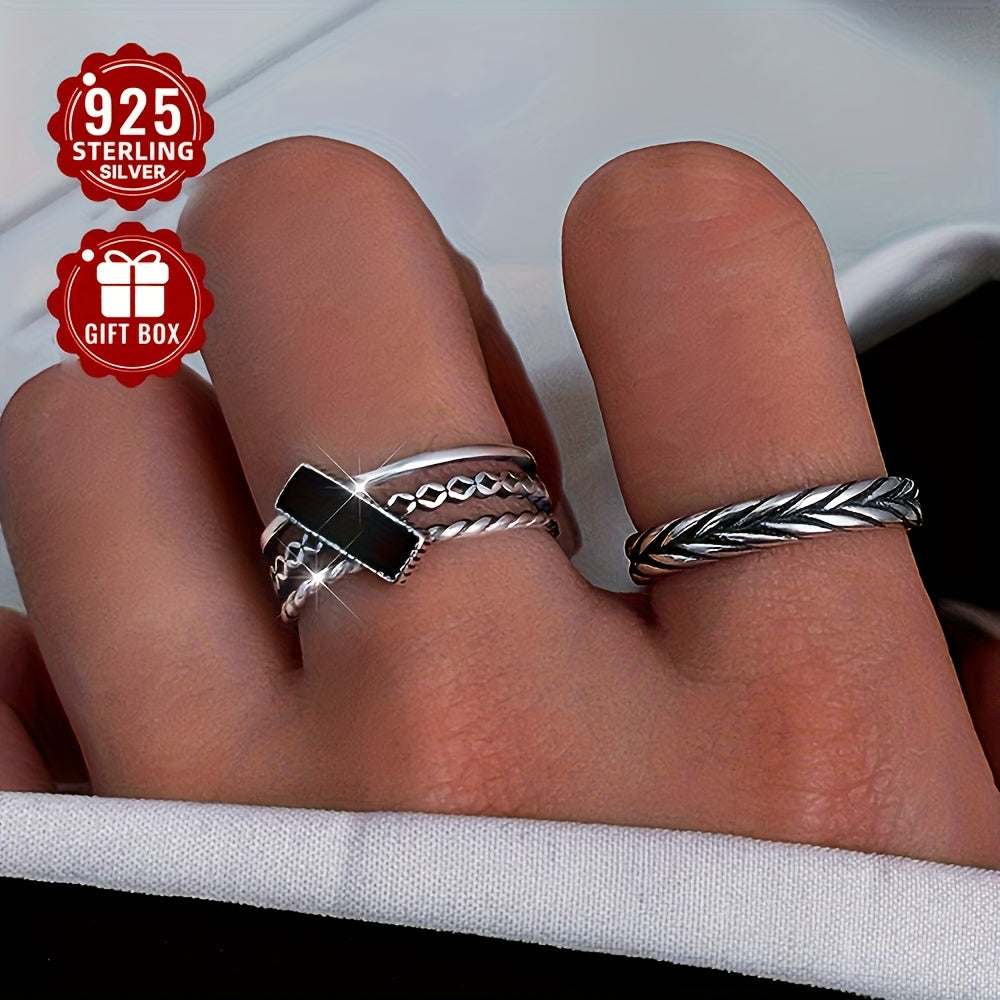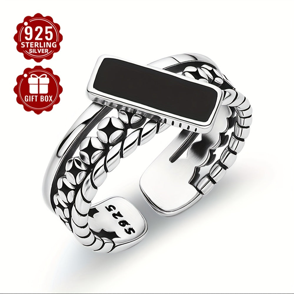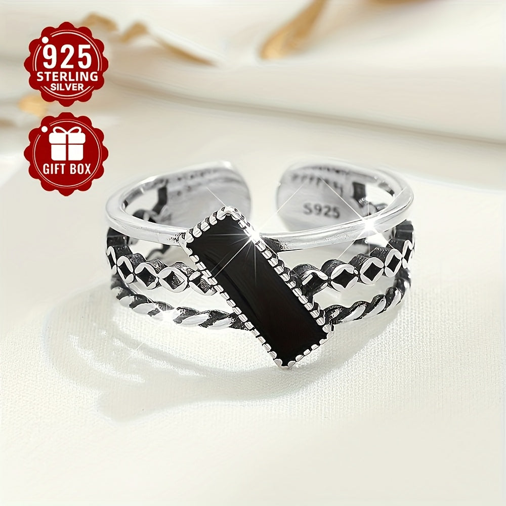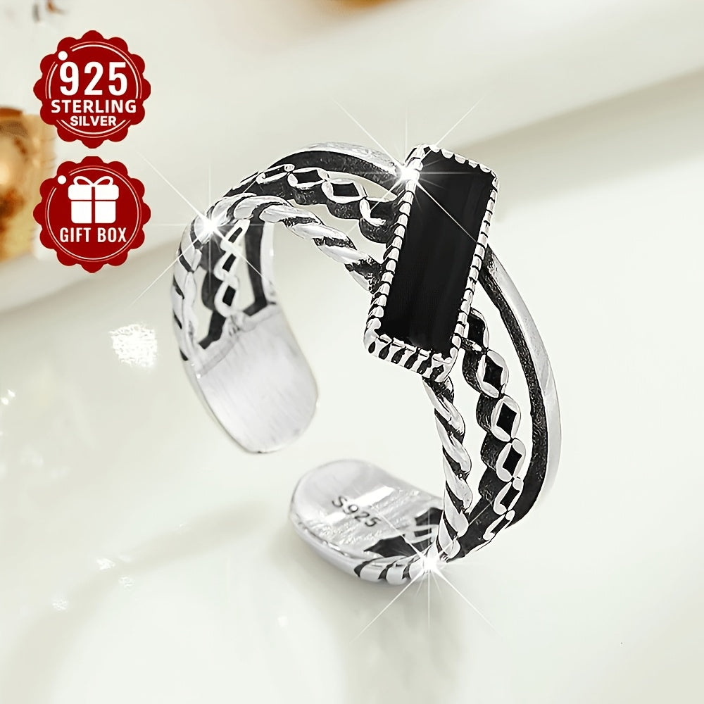 This exquisite open ring is crafted from pure S925 silver with a vintage rectangular design. Perfect for party activities, it also makes a great gift for family and friends.