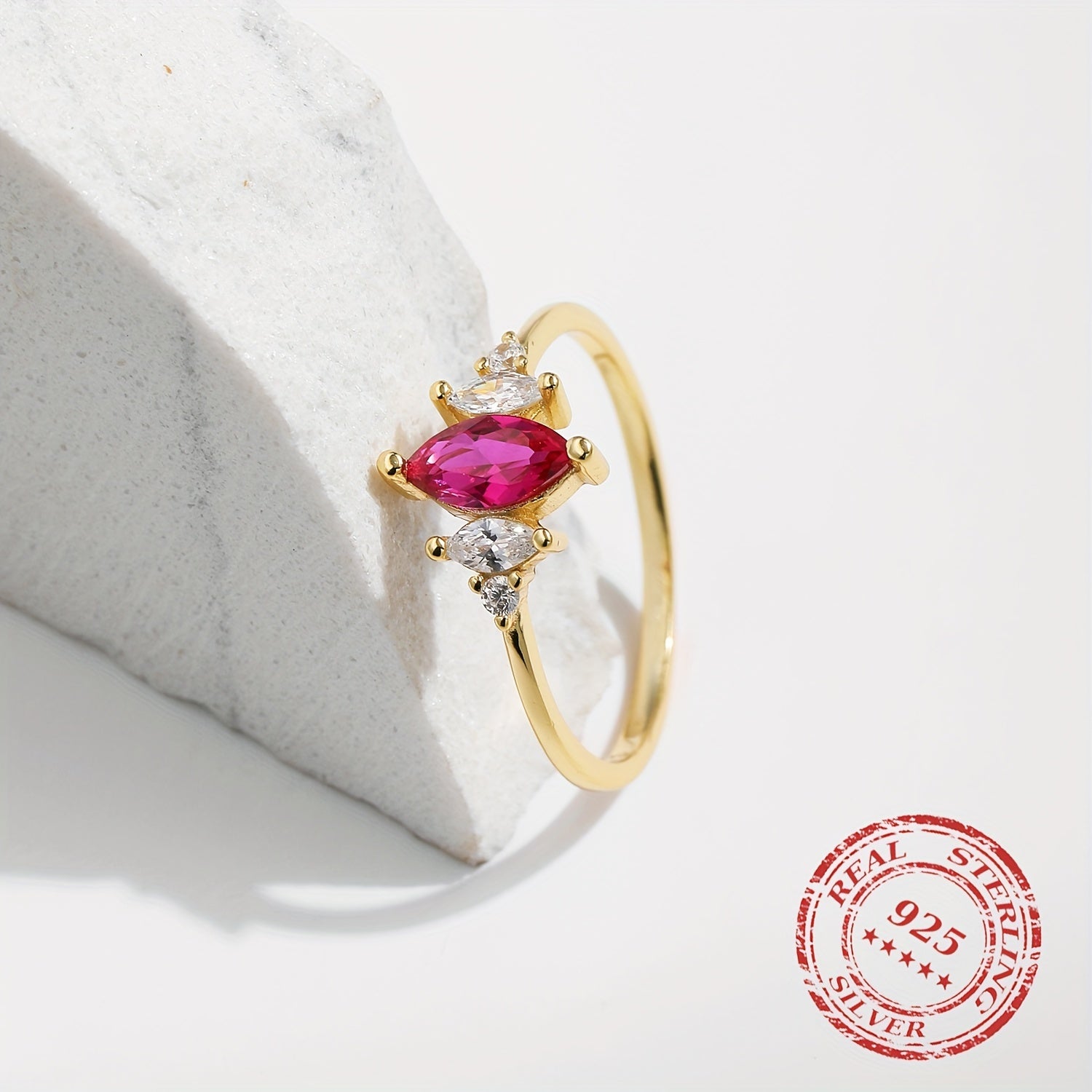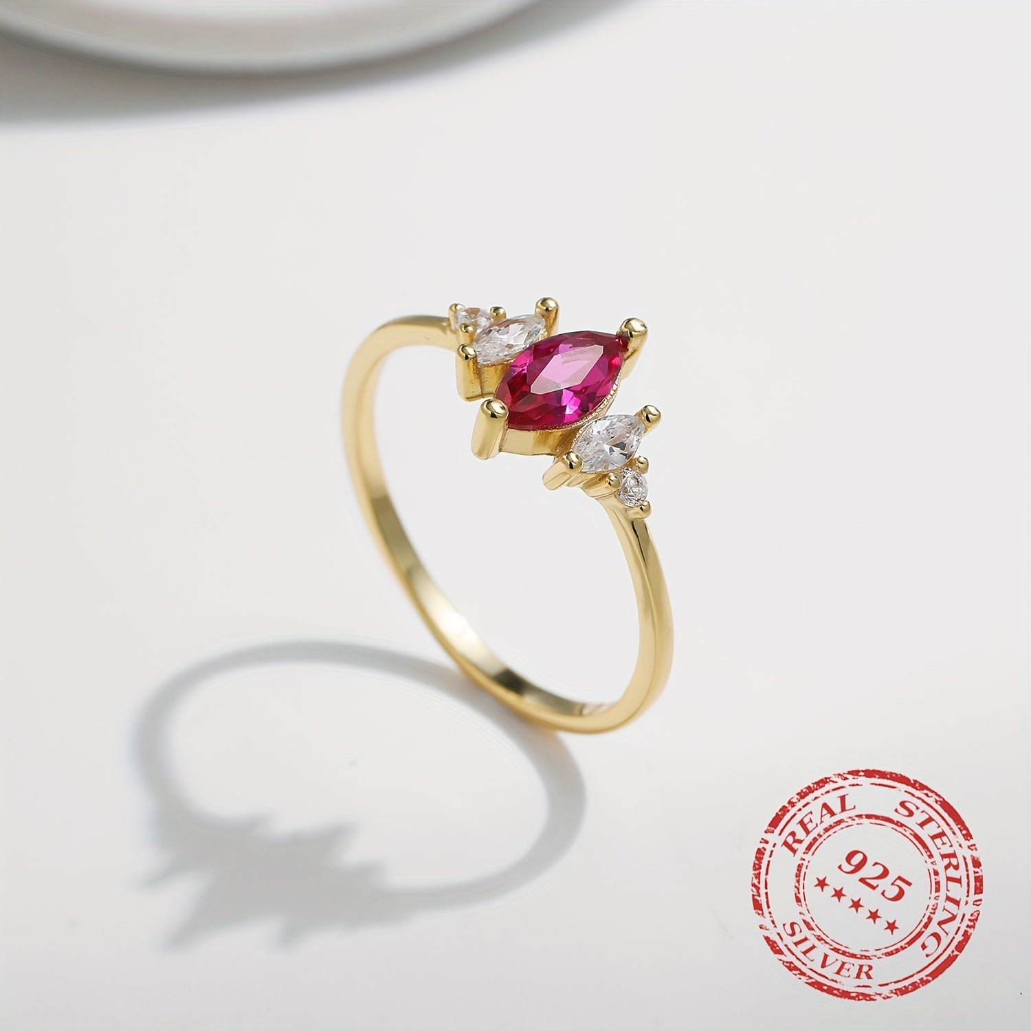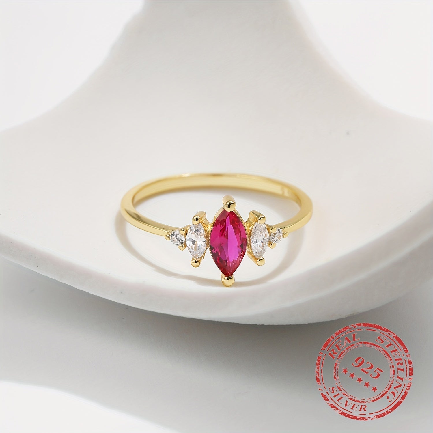 Elegant 925 sterling silver ring featuring a sparkling red cubic zirconia stone. Ideal for casual outfits and makes a great gift.