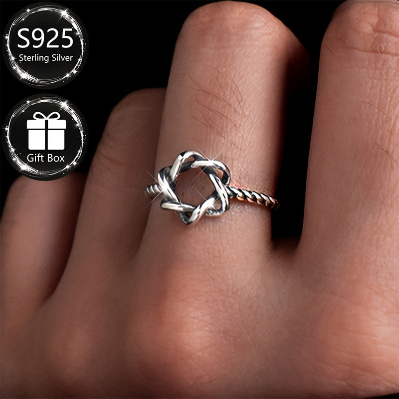 Add a touch of elegance with this vintage style sterling silver open ring. Perfect for daily wear or special occasions, this star hexagon ring is a versatile accessory that can be worn all year round.