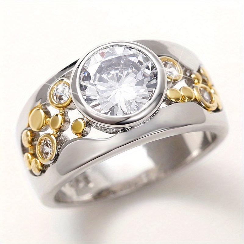 This stunning double tone zirconia ring is perfect for both women and men. Made from high-quality golden plated copper, it features a vintage design that will add a touch of elegance to any outfit.