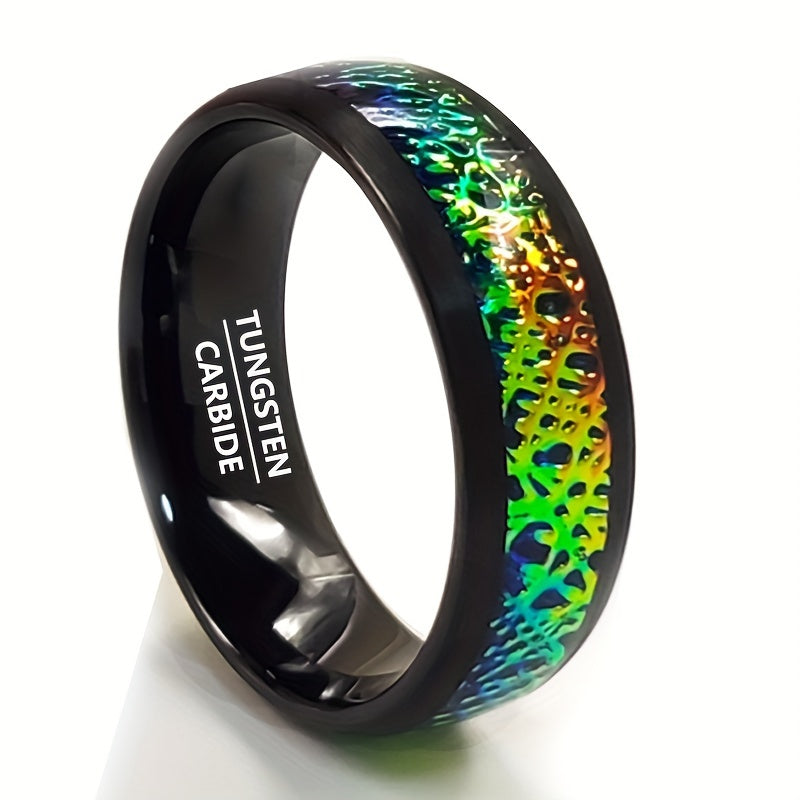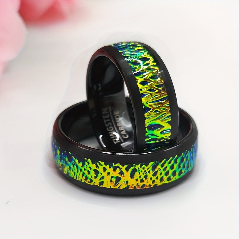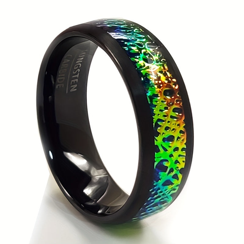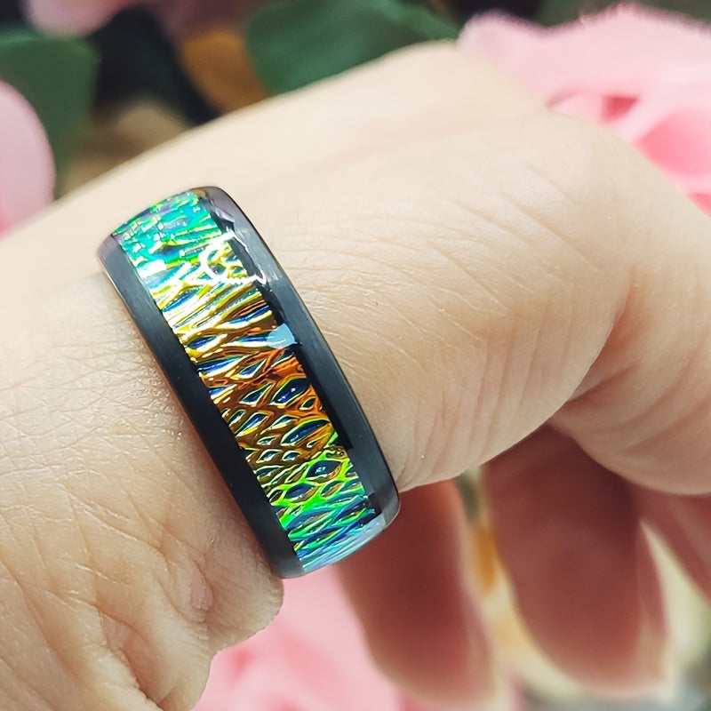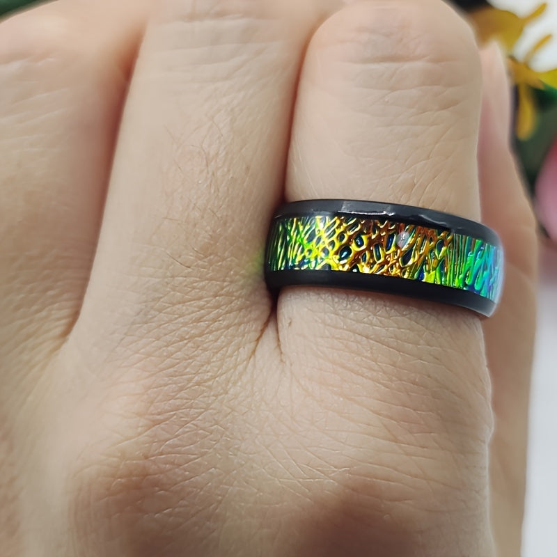 Add a touch of vintage charm to your ensemble with this gradient tungsten steel ring. The iridescent band features unique edges that make it perfect for casual attire and everyday wear.