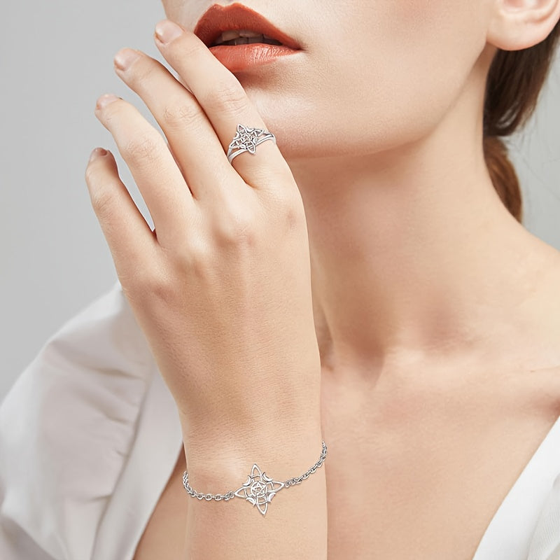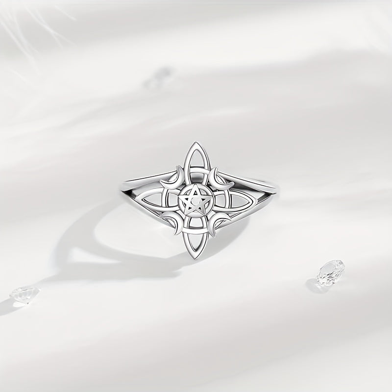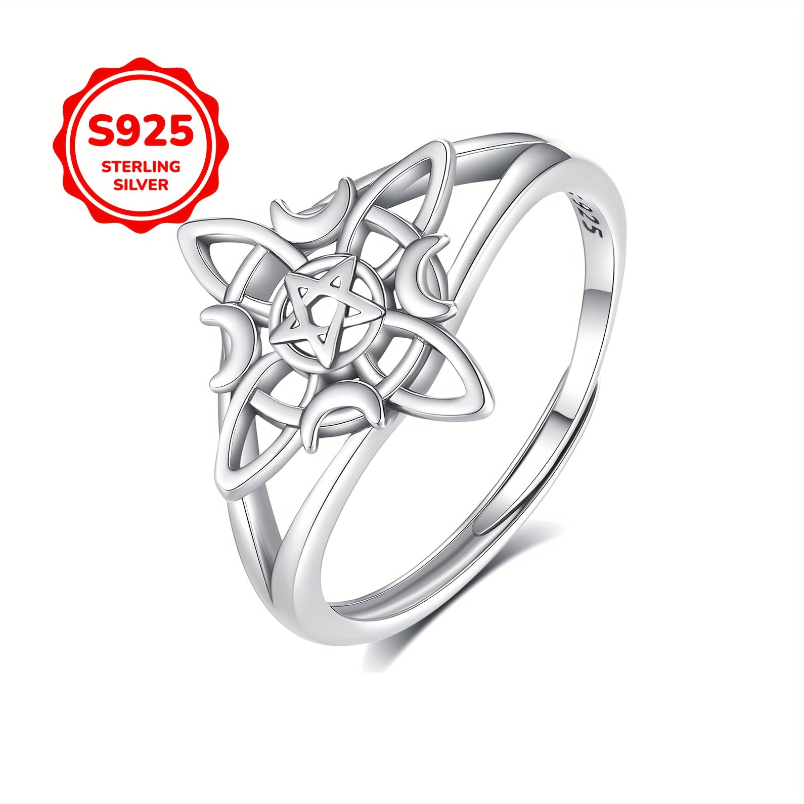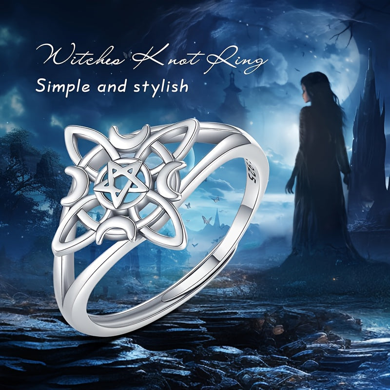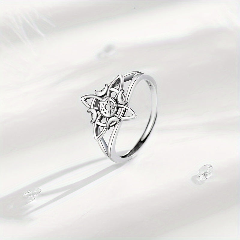 This stunning vintage boho style ring is made of S925 sterling silver, making it perfect for daily wear. It features a witches' star design and an adjustable open band for a comfortable fit. A great gift idea for women who love unique jewelry!