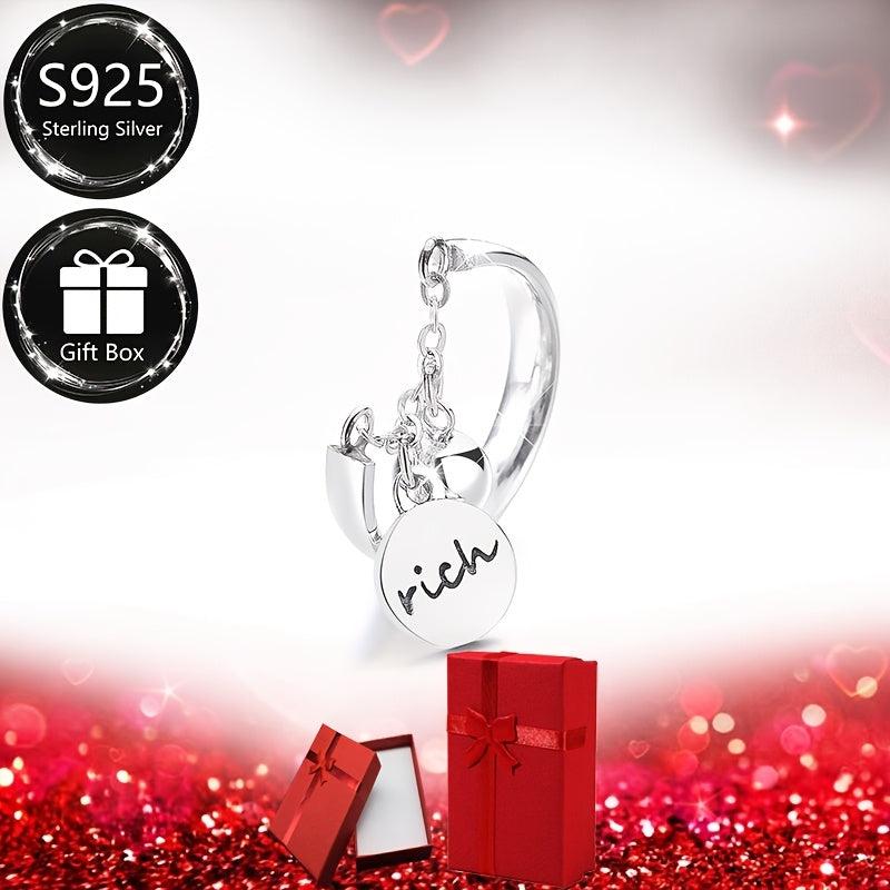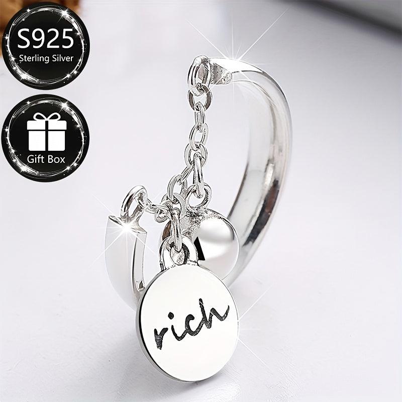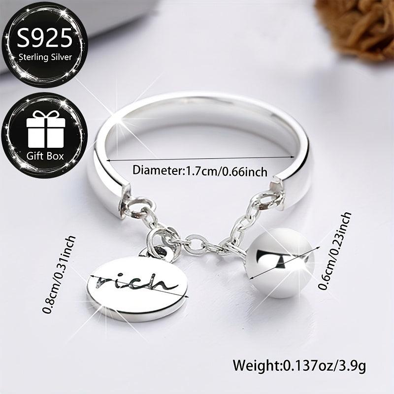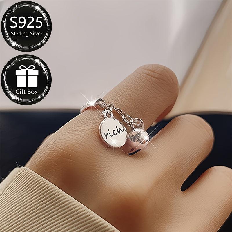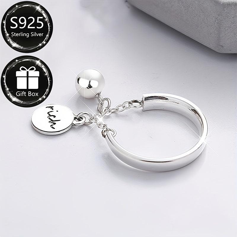This stylish open ring features a British-inspired design with a round bead tassel. Made of 925 pure silver, suitable for parties and special occasions.