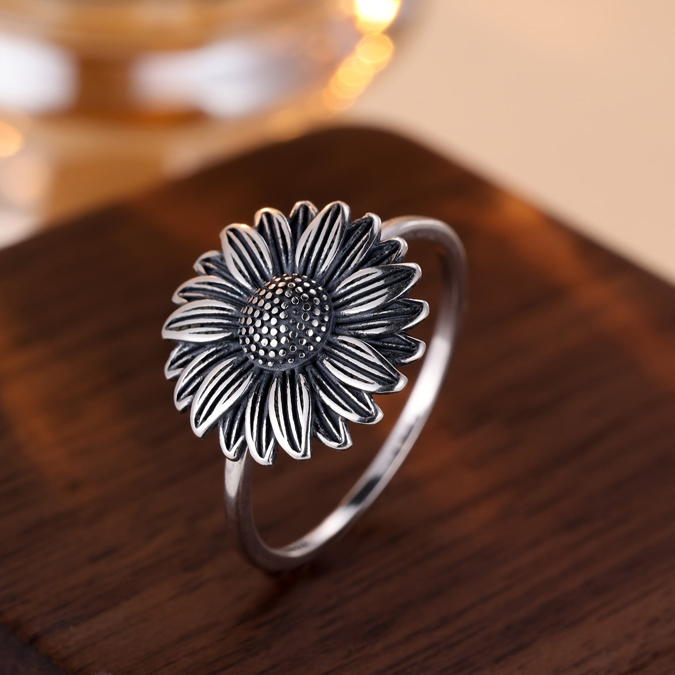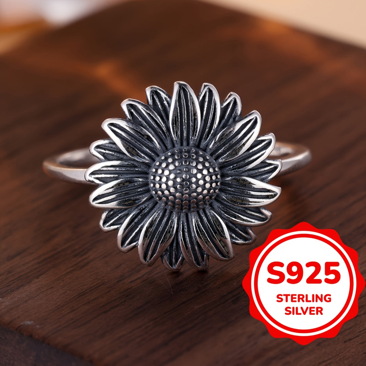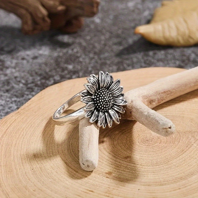 This exquisite Vintage Sunflower Ring is crafted with sterling silver featuring a sunflower design. Perfect for holidays, parties, or as a thoughtful gift.
