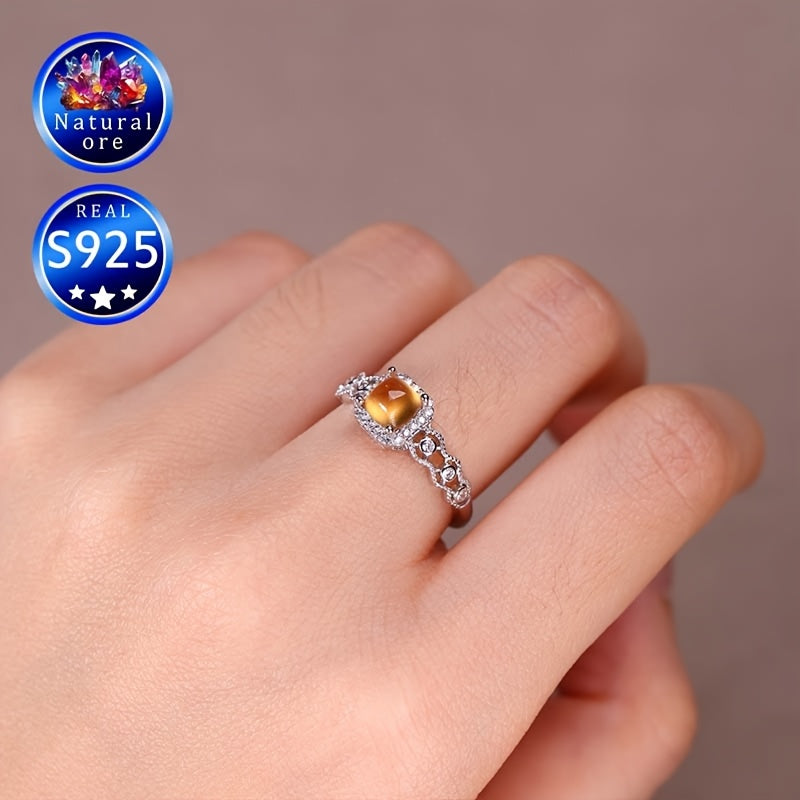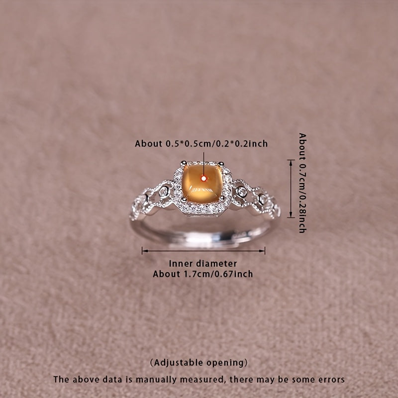 This stunning vintage ring features a natural orange sunstone mosaic inlay set in 925 silver with an adjustable opening.