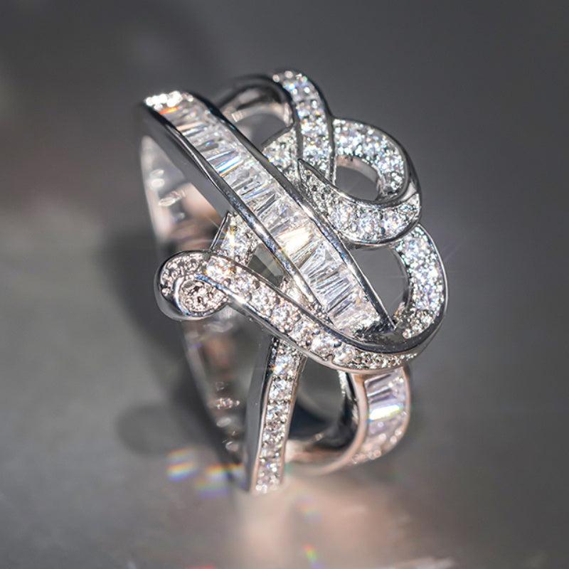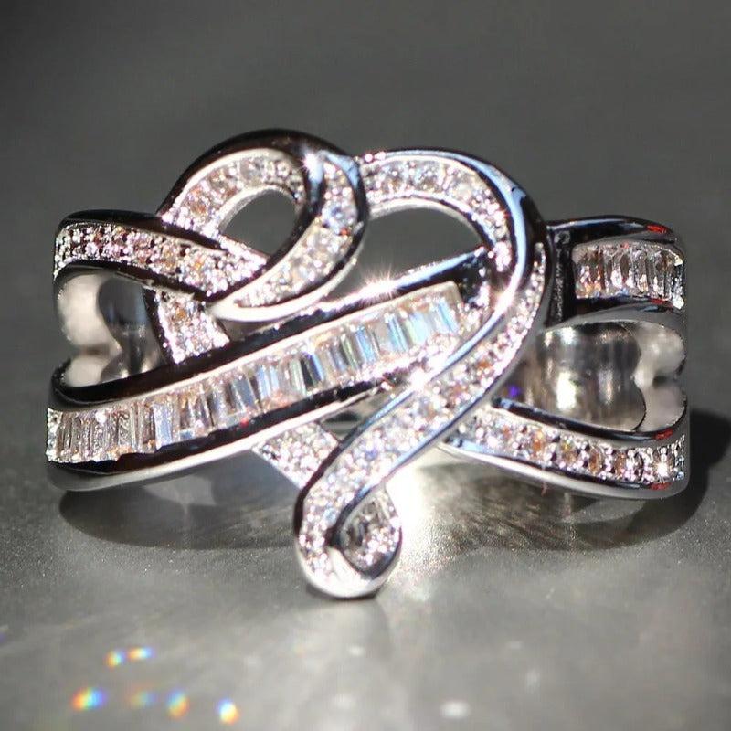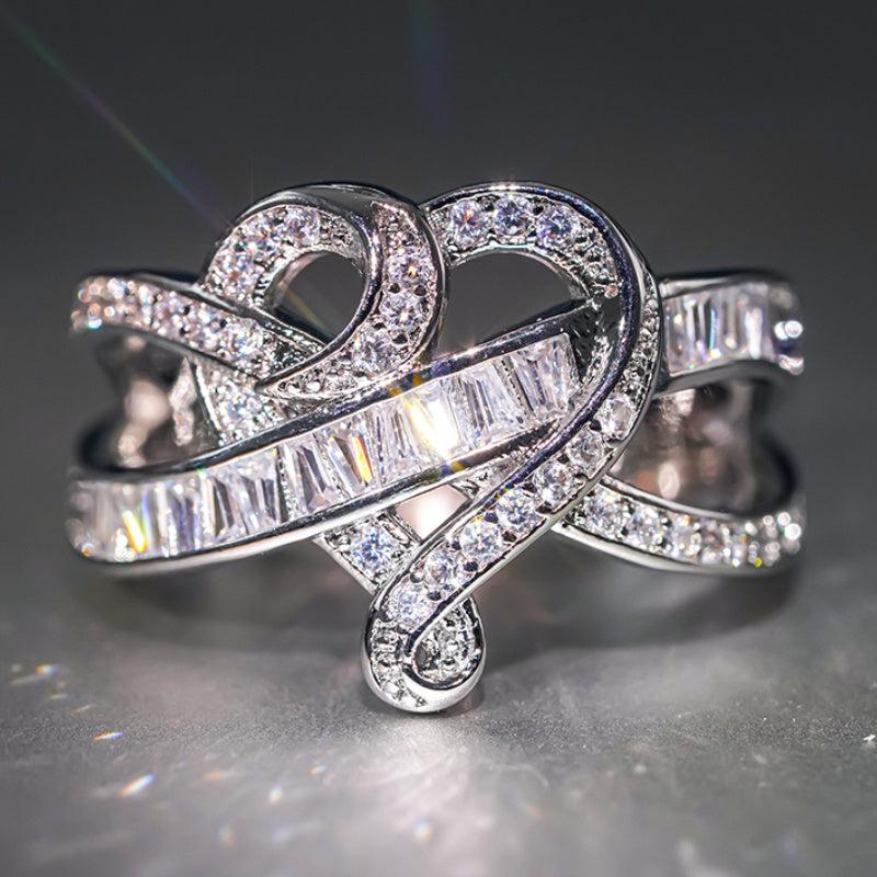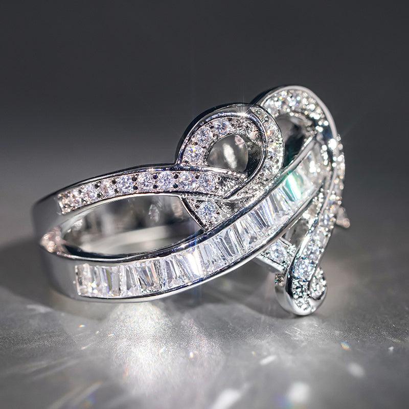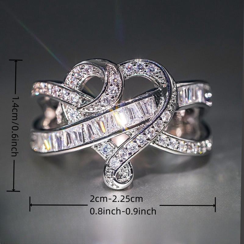 This stunning ring features an infinity heart design with micro paved synthetic zirconia, ideal for weddings, proposals, banquets, parties, and daily wear.