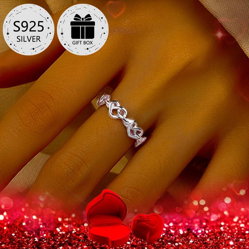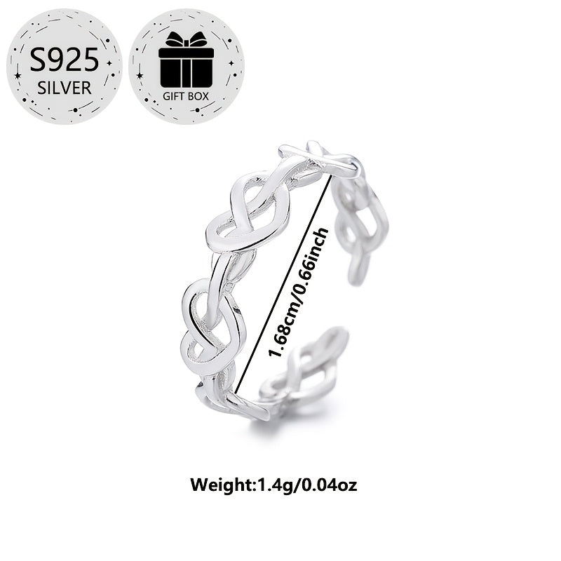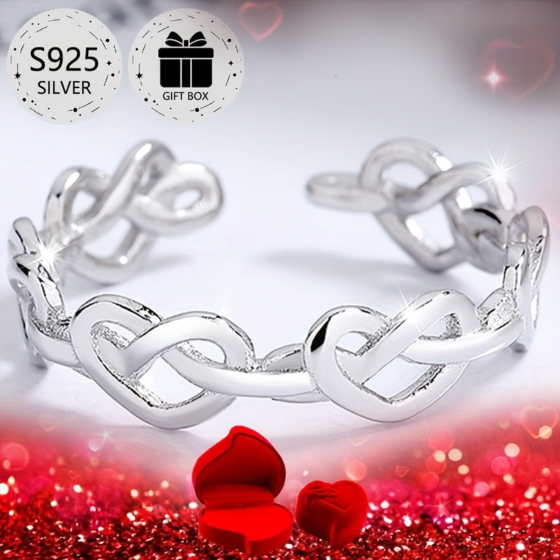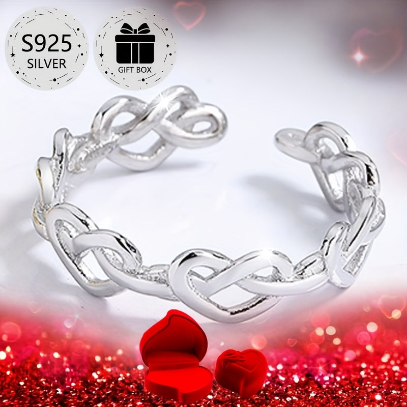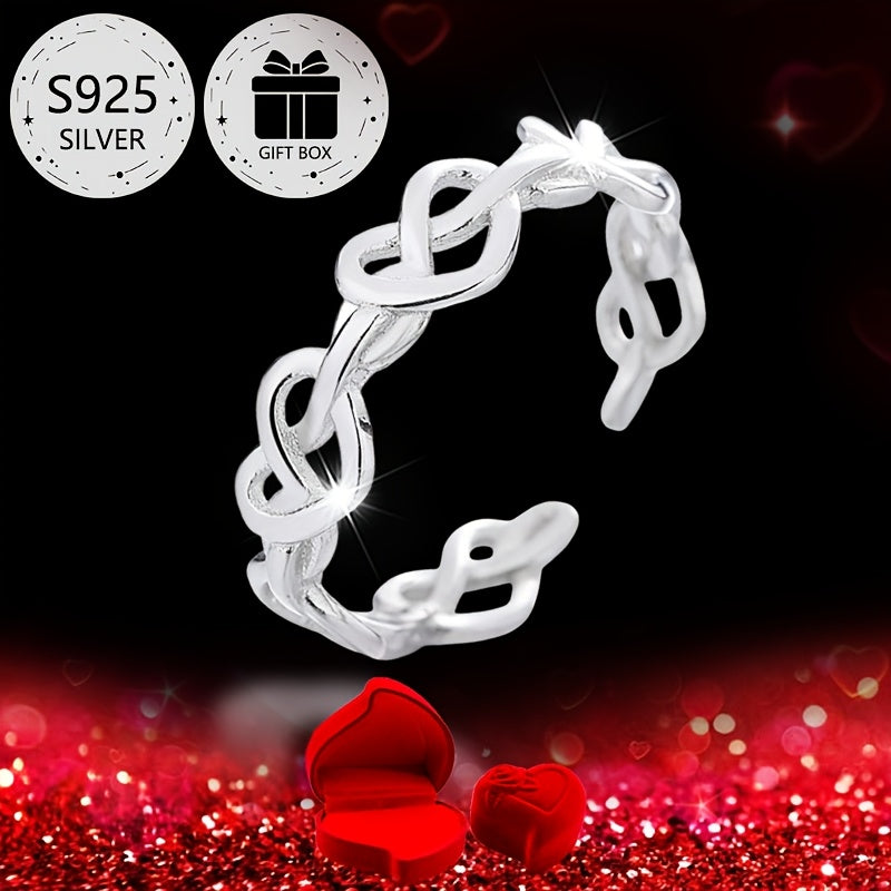 This vintage open ring features love entwined design, crafted in 925 silver. It weighs about 1.4g and comes with love packaging, making it a perfect gift for confession.