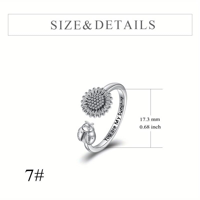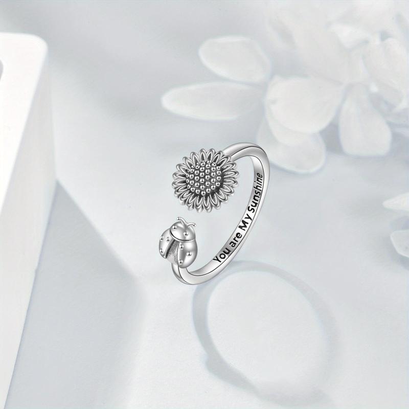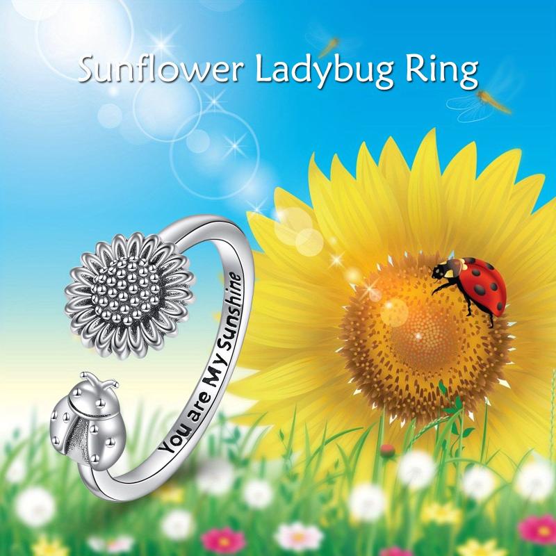 Add a touch of nature-inspired beauty to your look with this sunflower ladybug ring. Made of sterling silver, this vintage adjustable ring is the perfect jewellery piece for women and girls.