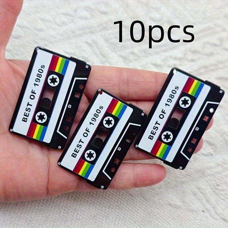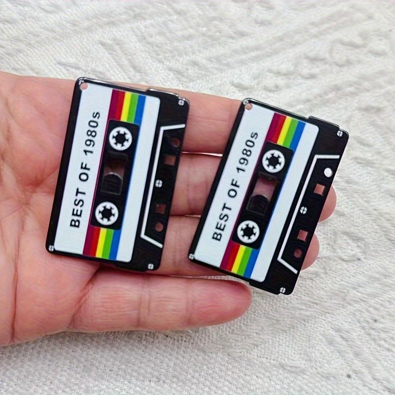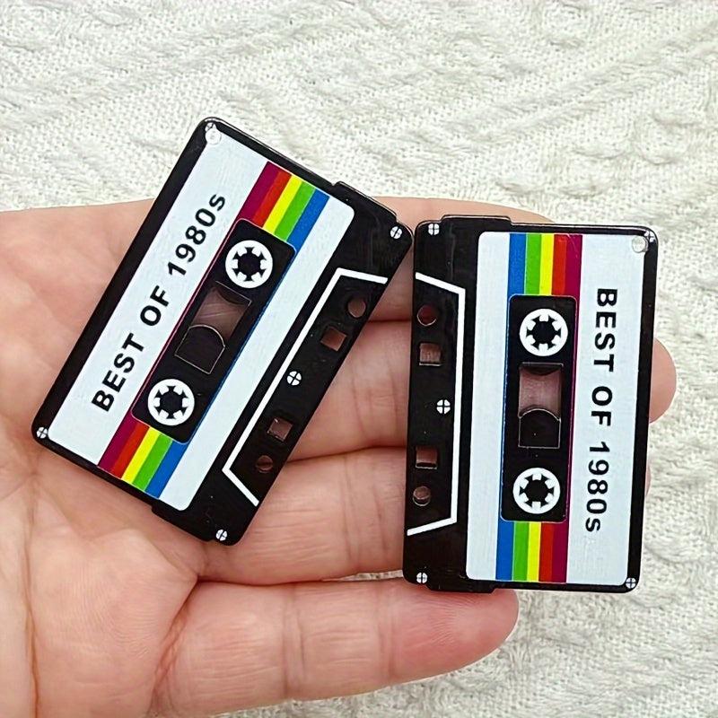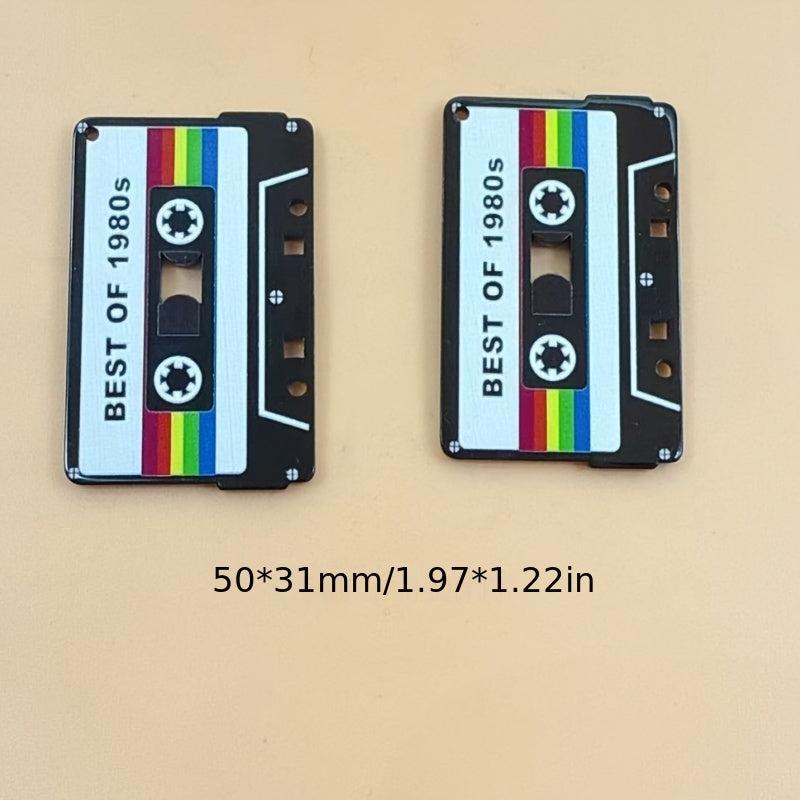 Add a touch of retro style to your jewelry projects with these colorful acrylic pendants shaped like vintage cassette tapes featuring stripes and geometric patterns. Perfect for creating unique and eye-catching accessories.
