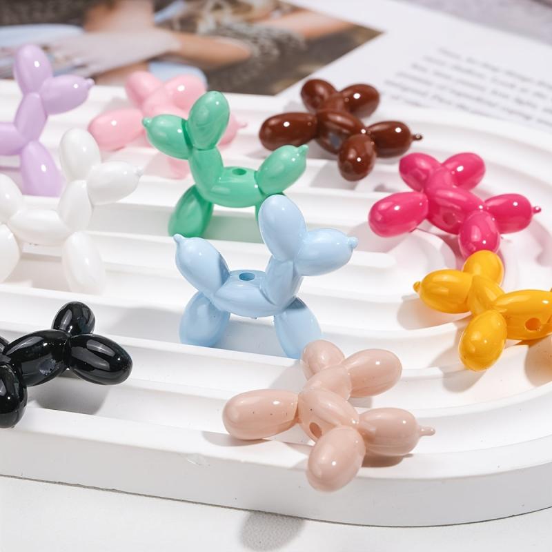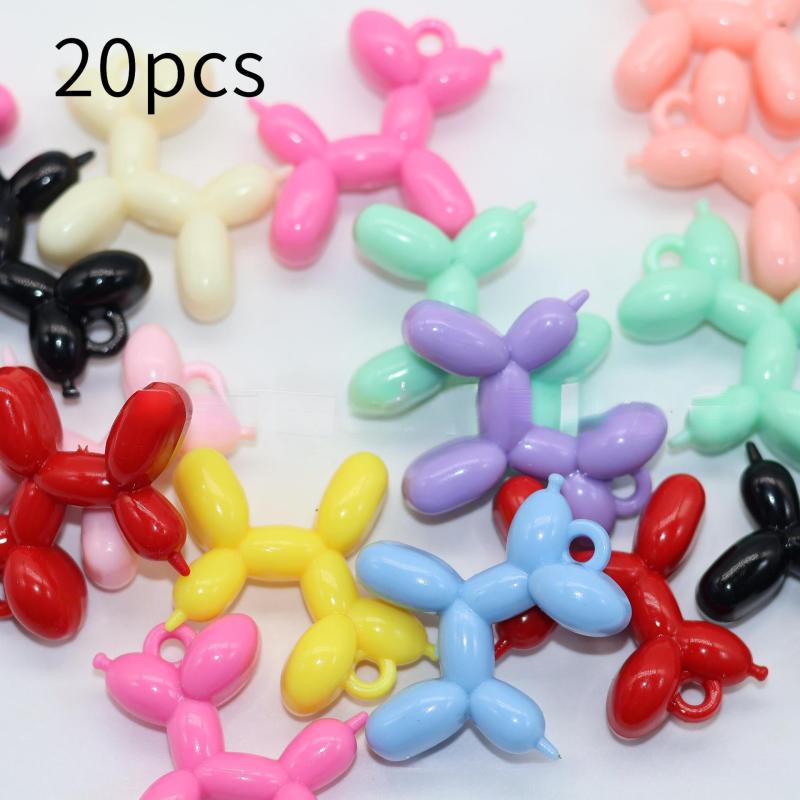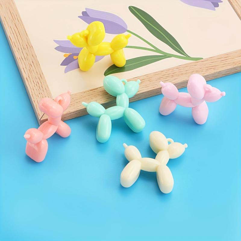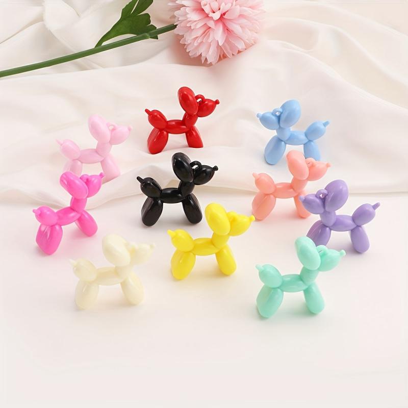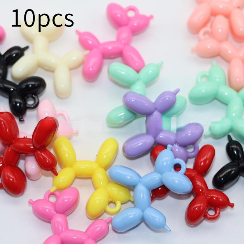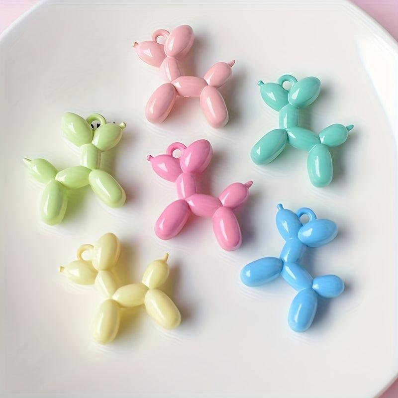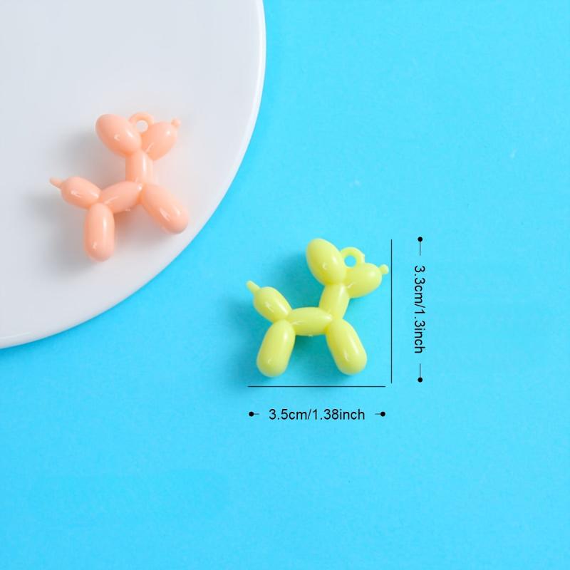 Get creative with these colorful acrylic charms featuring cute balloon dogs with ribbon bows. Perfect for making keychains, phone cases, necklaces, and earrings.
