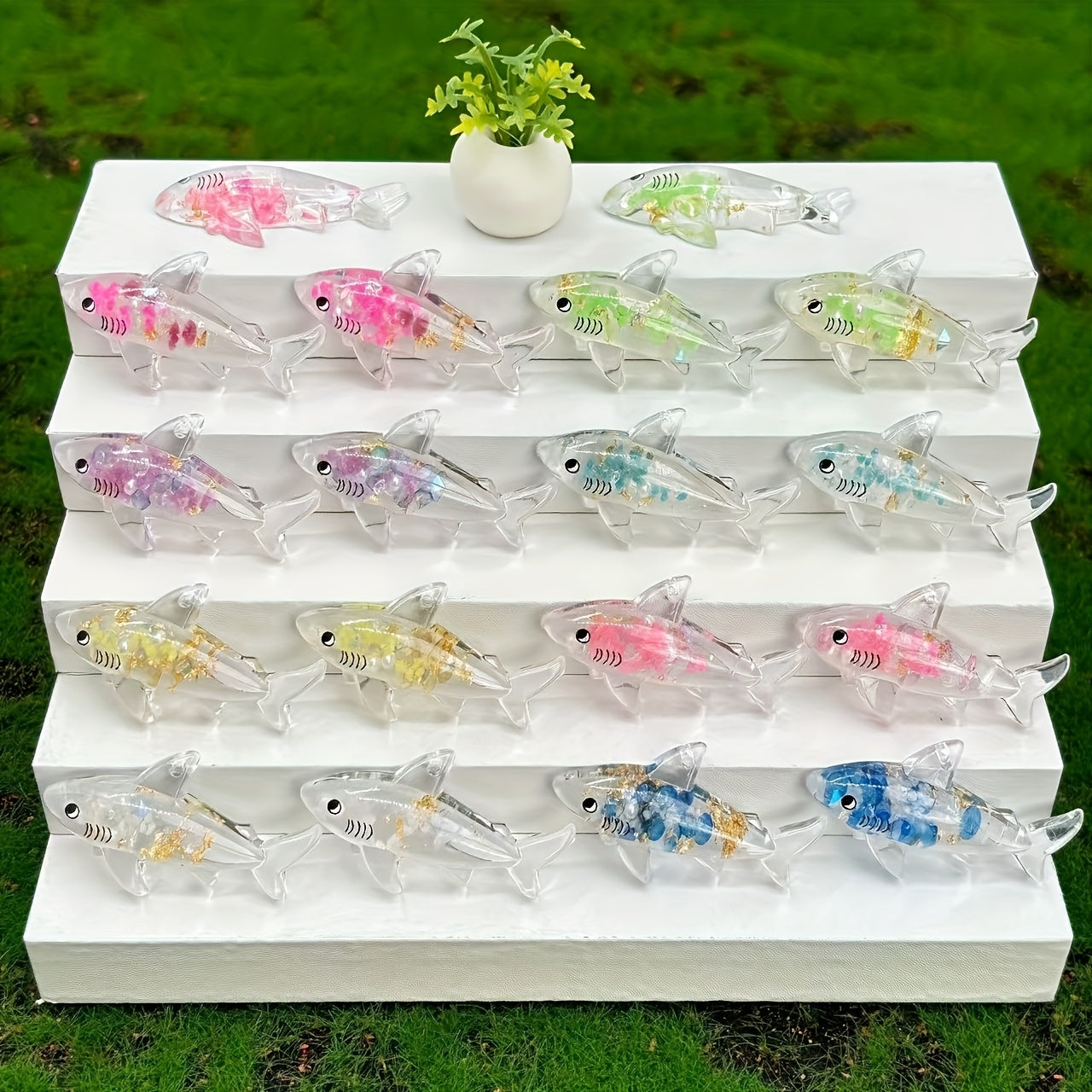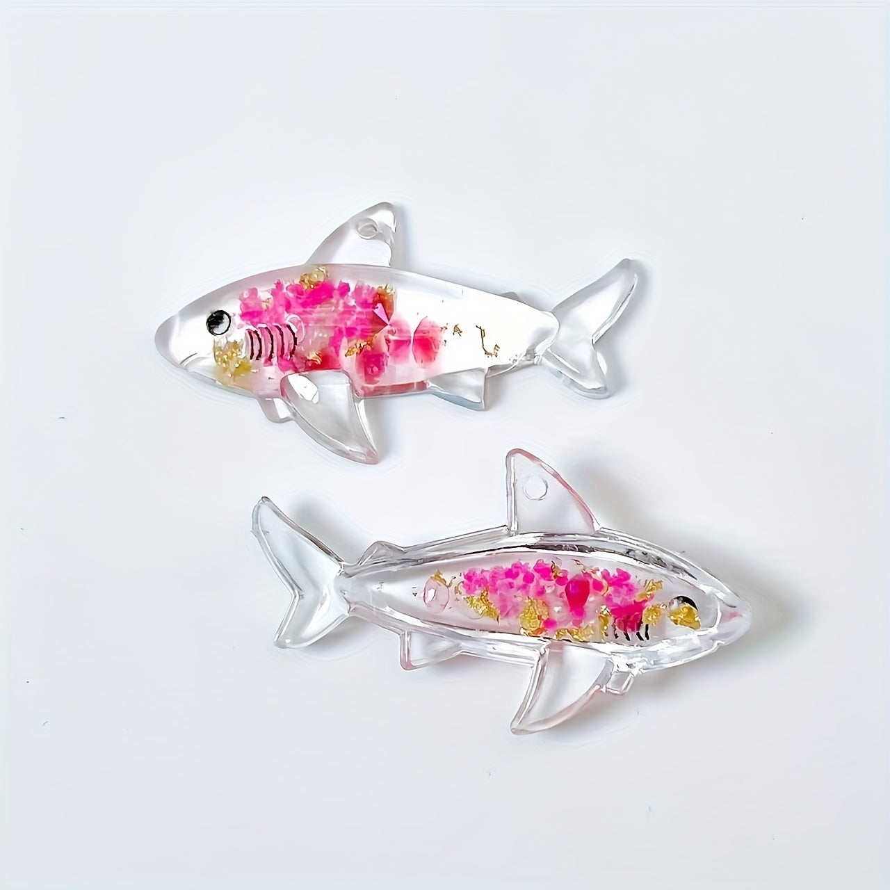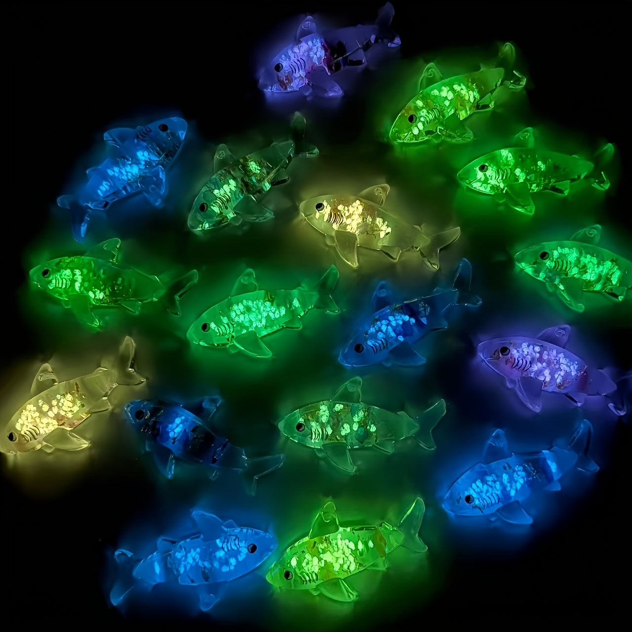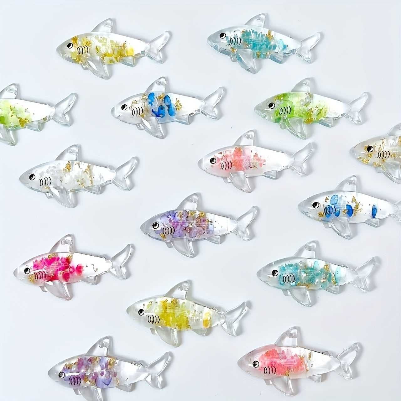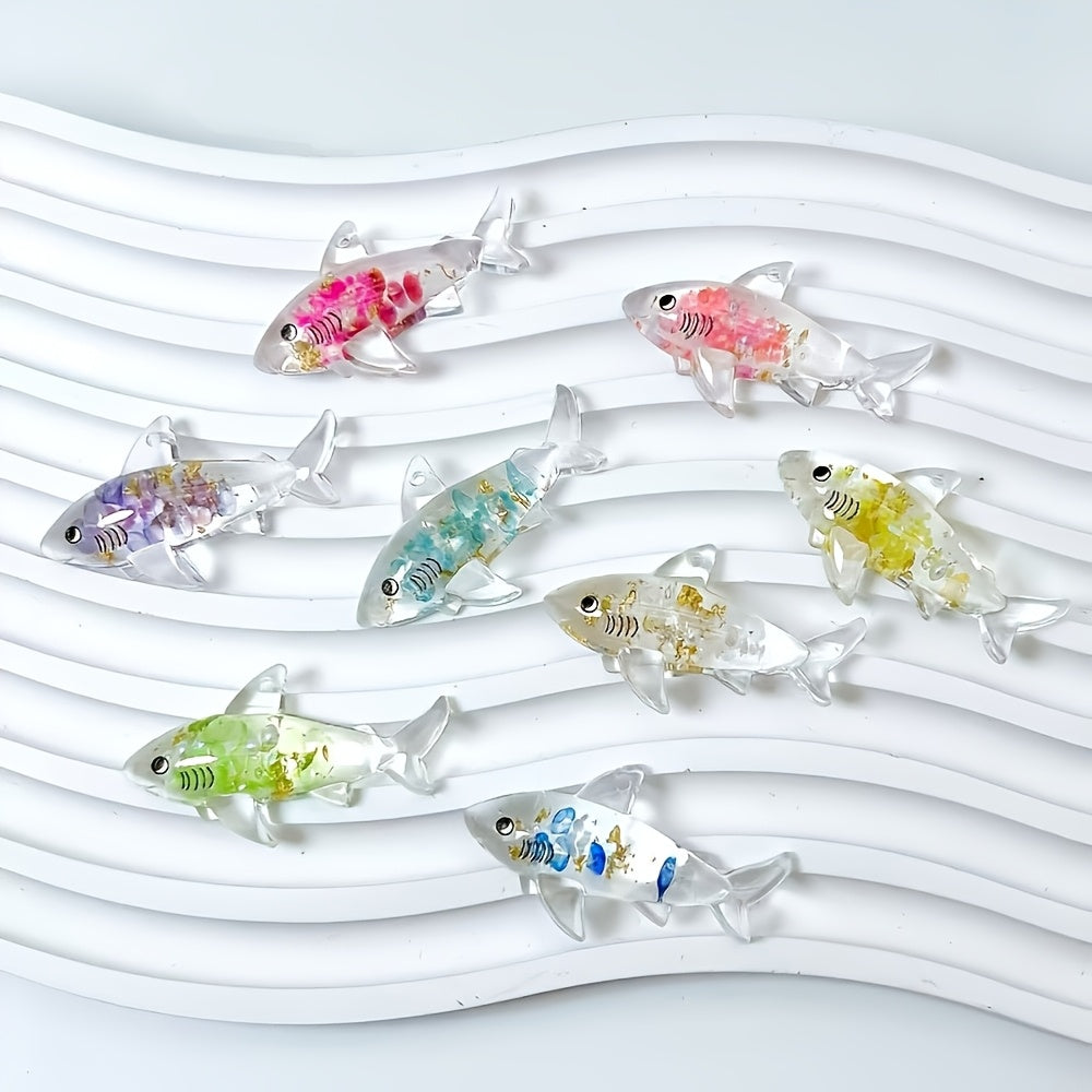 These colorful shark pendants are perfect for DIY jewelry making. They glow in the dark and can be used to create necklaces, earrings, keychains, and more.