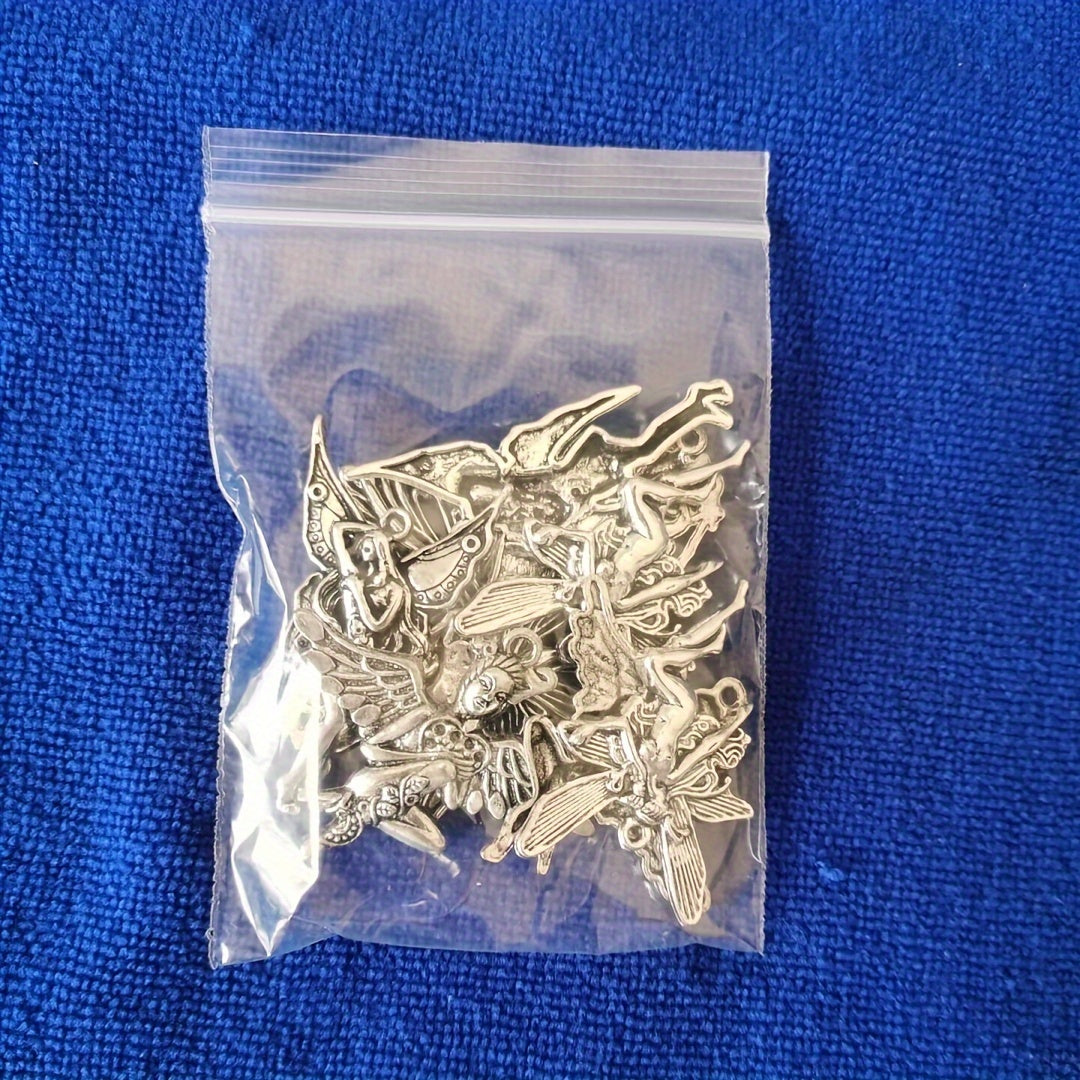 Add a touch of magic to your crafts with these antiqued silvery metal angel fairy charms. Perfect for creating unique jewelry pieces or crafting projects.
