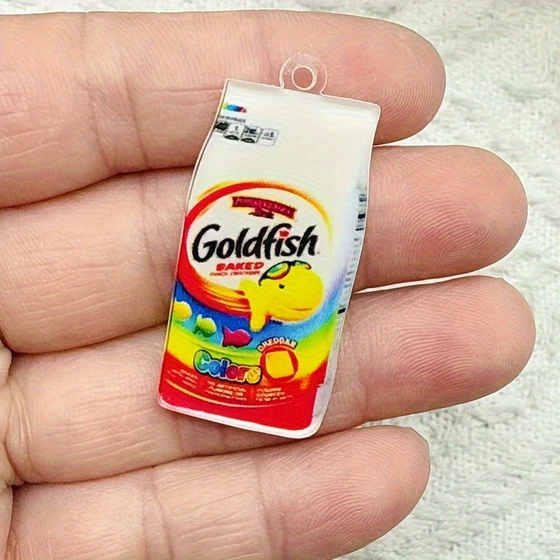 10pcs Snack Shaped Pendants - Goldfish & Fruit Loops, Jewelry Making