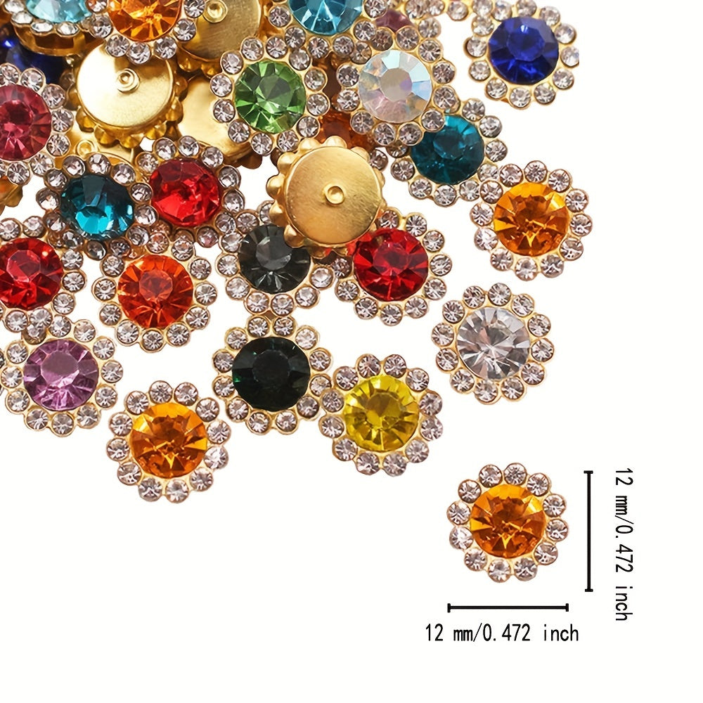 Add a touch of sparkle to your clothes, shoes, earrings, belts, and crafts with this set of 120 colorful sunflower-shaped rhinestones measuring 12mm. Perfect for adding a pop of color and glamour to your DIY projects.