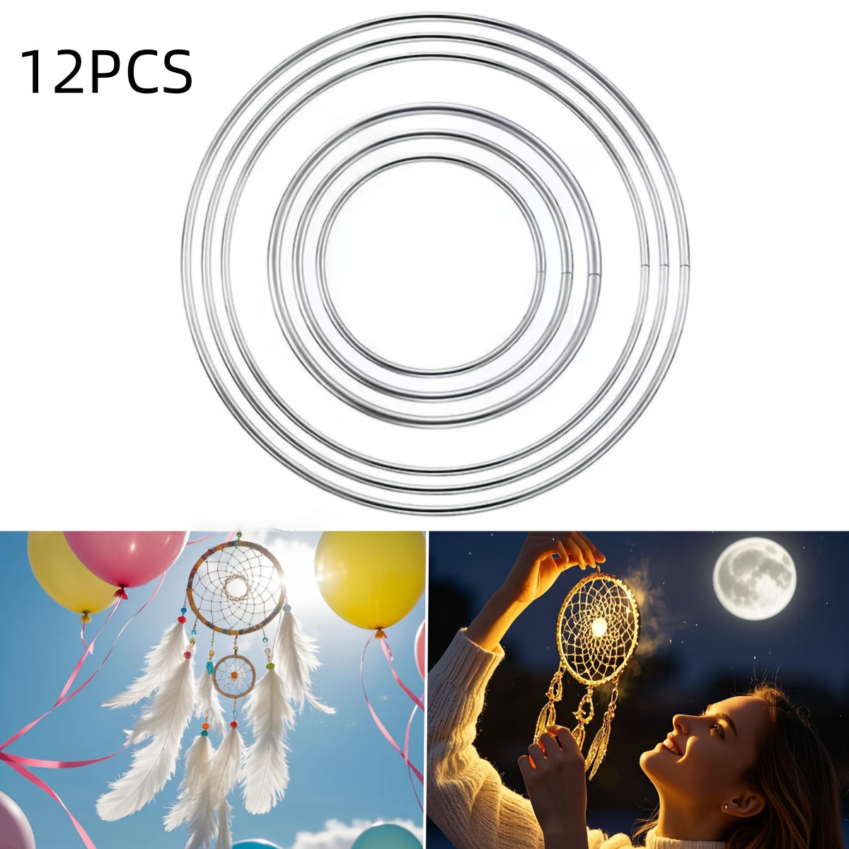 This set includes 12 metal hoops in 6 different sizes, perfect for creating dream catchers and other DIY crafts. The hoops are durable and welded for stability.