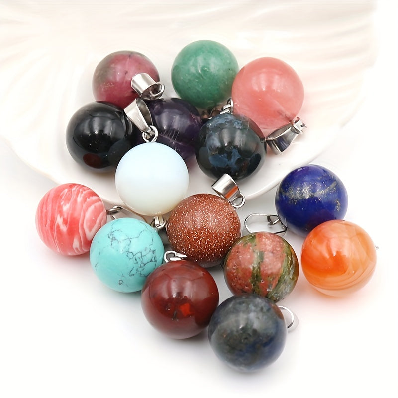 Create your own unique jewelry pieces with these 12pcs of random natural stone round pendant charms. Perfect for DIY jewelry making projects.