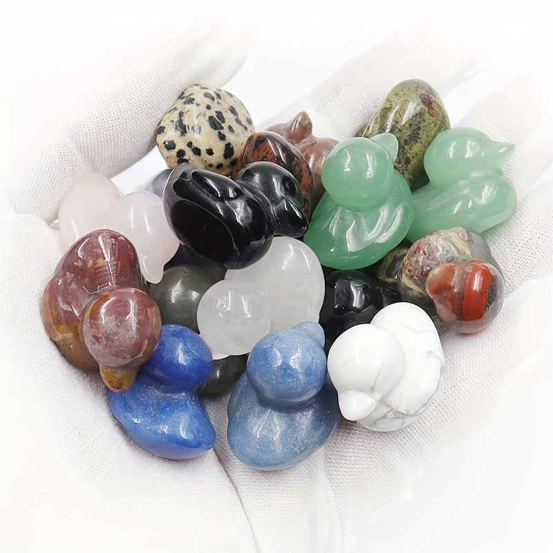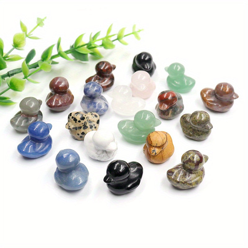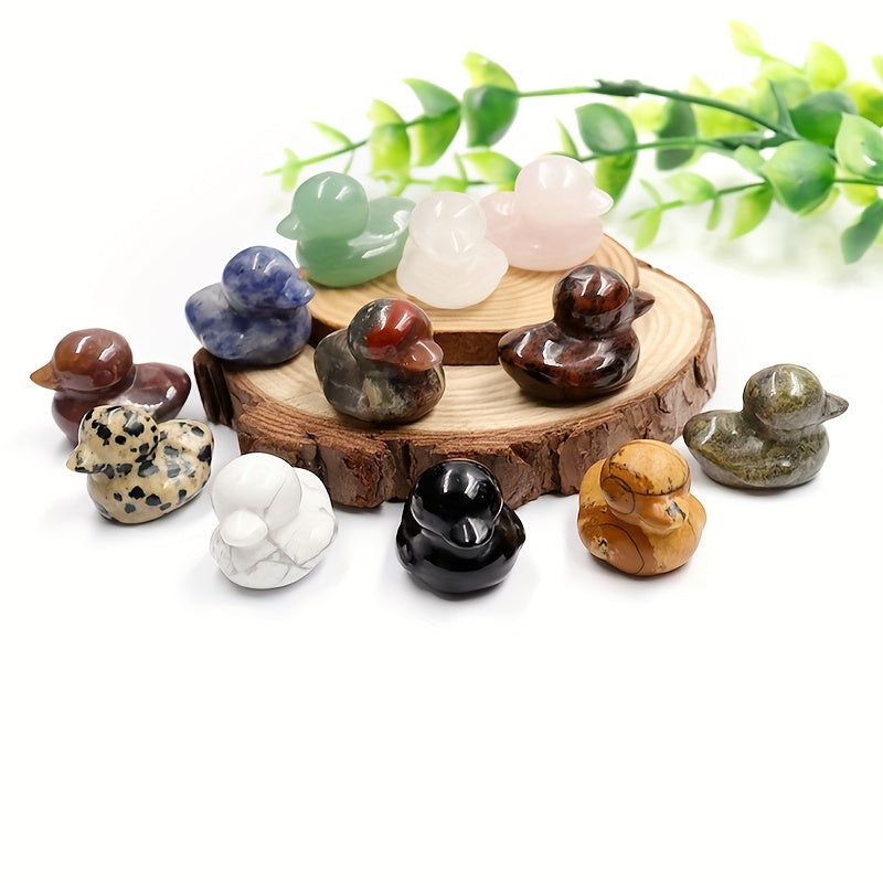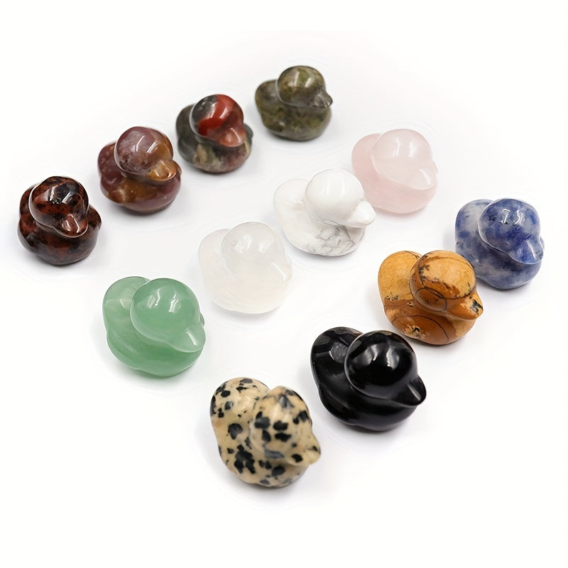 Box of 12 random stone carved ornaments featuring duckling animal art, ideal for reiki healing, interior decoration, jewelry making, and crafts.