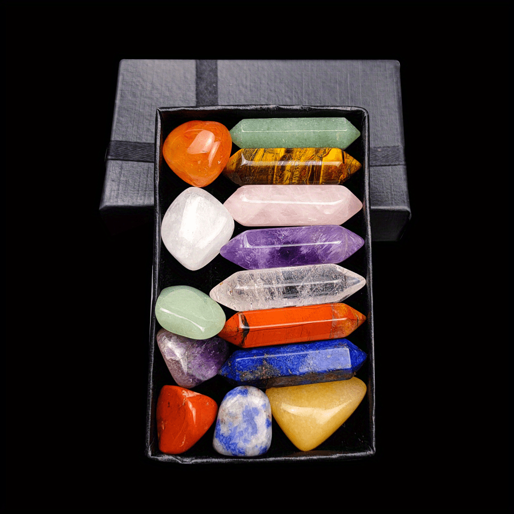 Elevate your meditation space with this unique set of chakra healing stones and crystals. Perfect for bedroom decor and enhancing your spiritual practice.