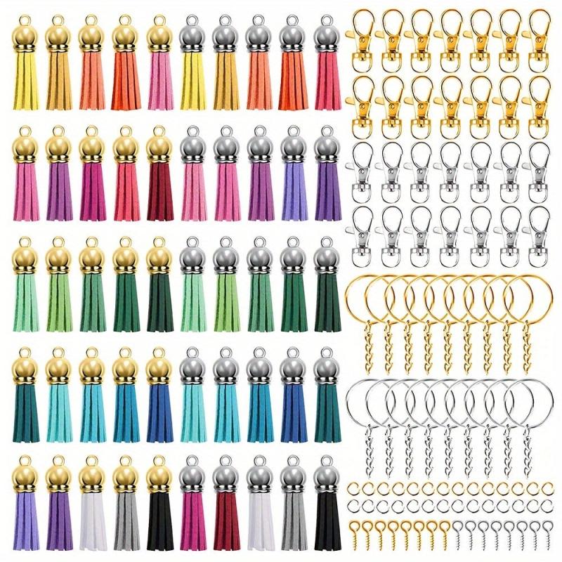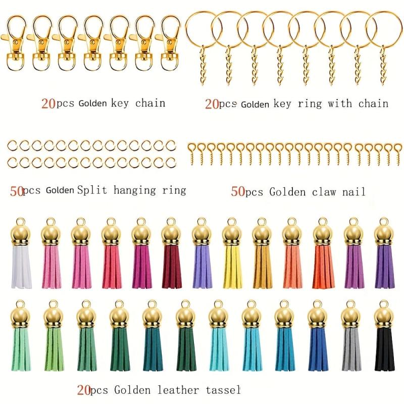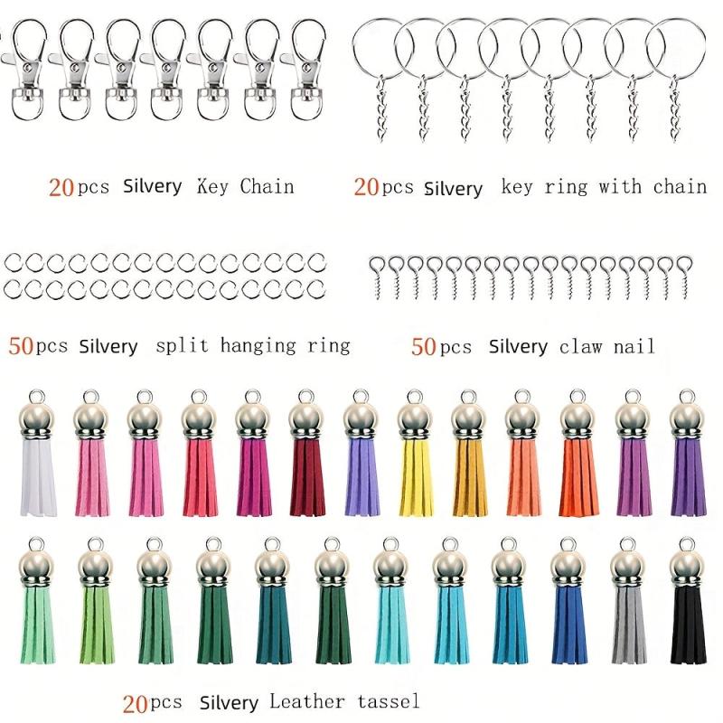 Create stunning jewelry and decorative art with this 160-piece crafting kit. Includes key rings, jump rings, pendants, and leather tassels.