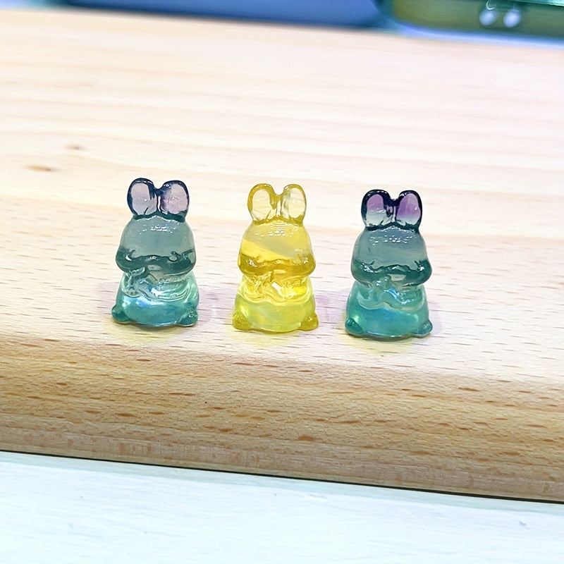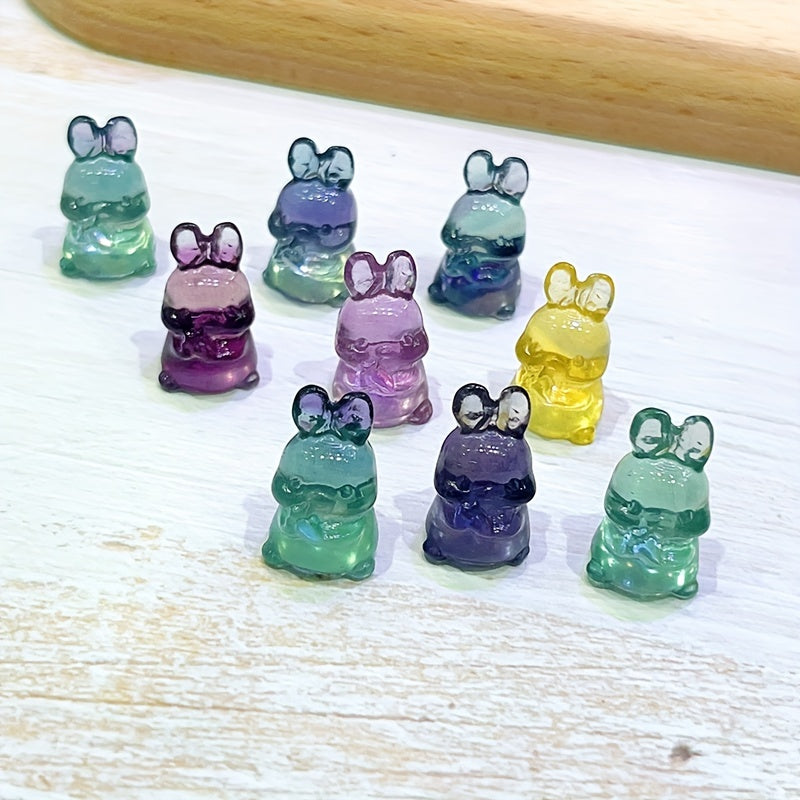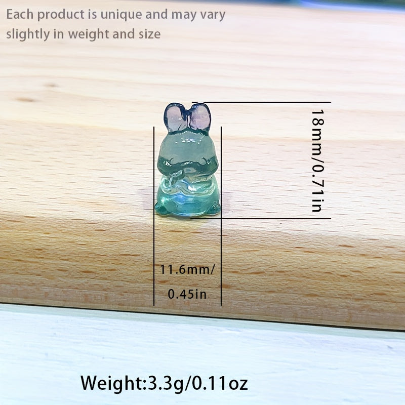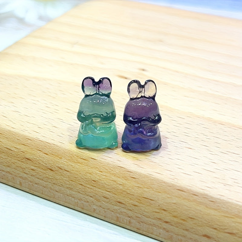 Adorable fluorite rabbit figurine holding a turnip, perfect for healing and decoration.