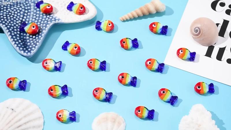 These glass fish shaped beads are perfect for creating your own jewelry bracelets and necklaces. Add a colorful and unique touch to your DIY creations!