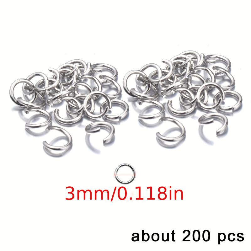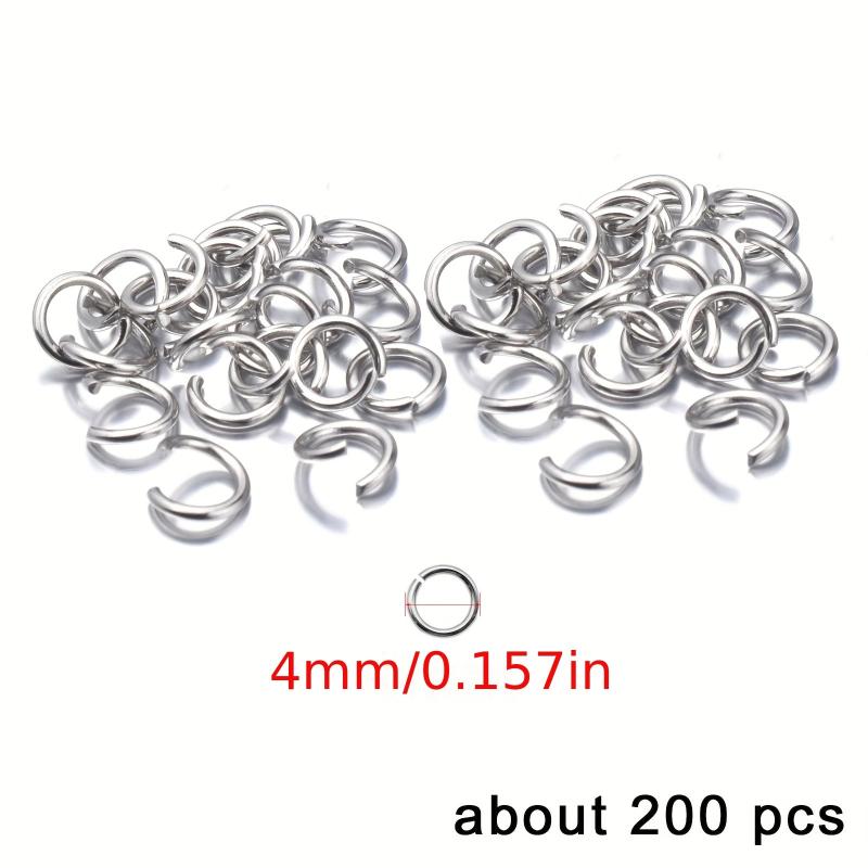 This pack contains 200 stainless steel open jump rings that can be used for making bracelets, necklaces, and other jewelry accessories.