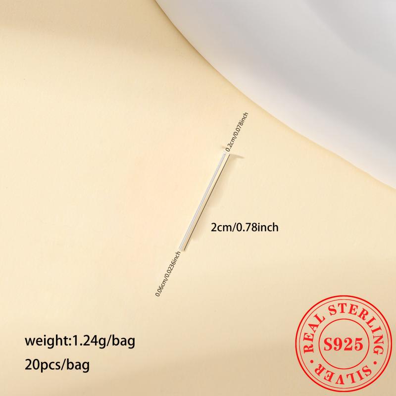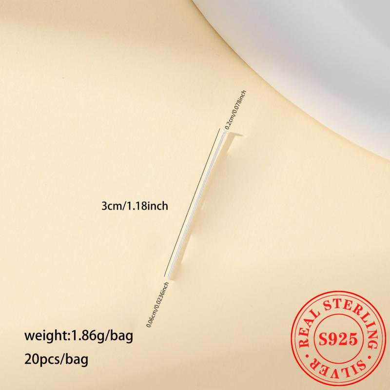 Get this 20pcs pack of S925 sterling silver T pins with flat head, ideal for making bracelets, necklaces, and earrings. The pins come in multiple sizes (20-40mm) and are perfect for fixing jewelry pieces. Made of high-quality material for durability and a professional finish.
