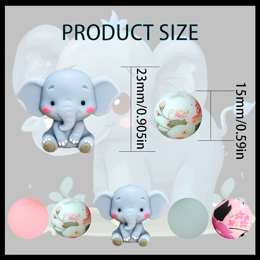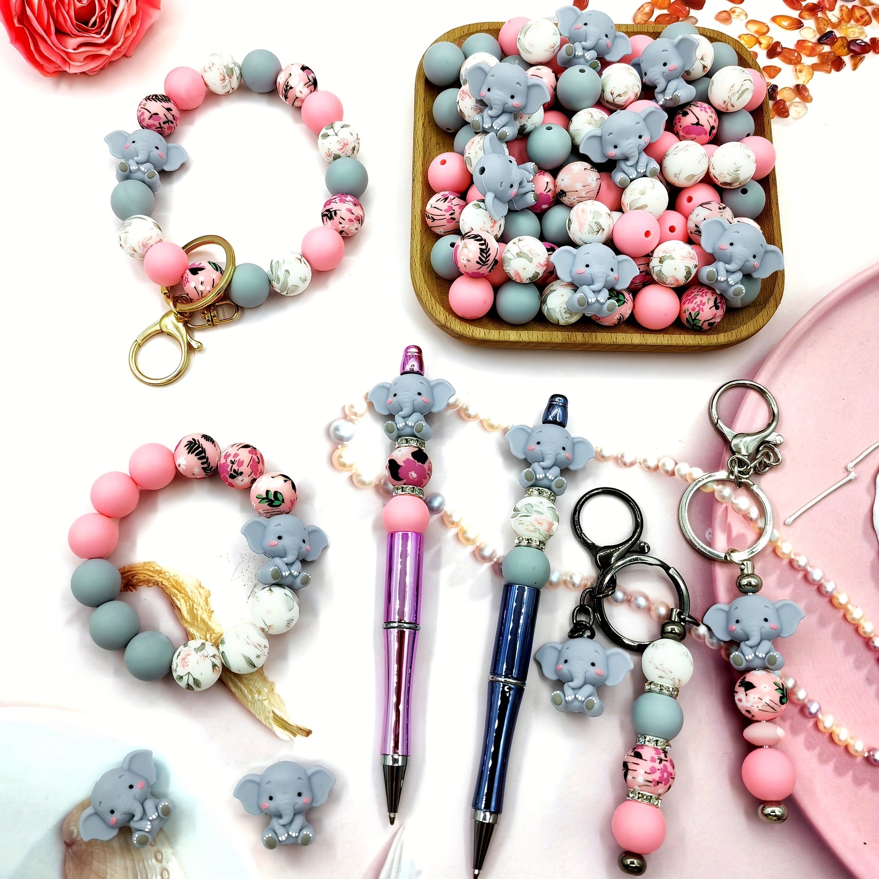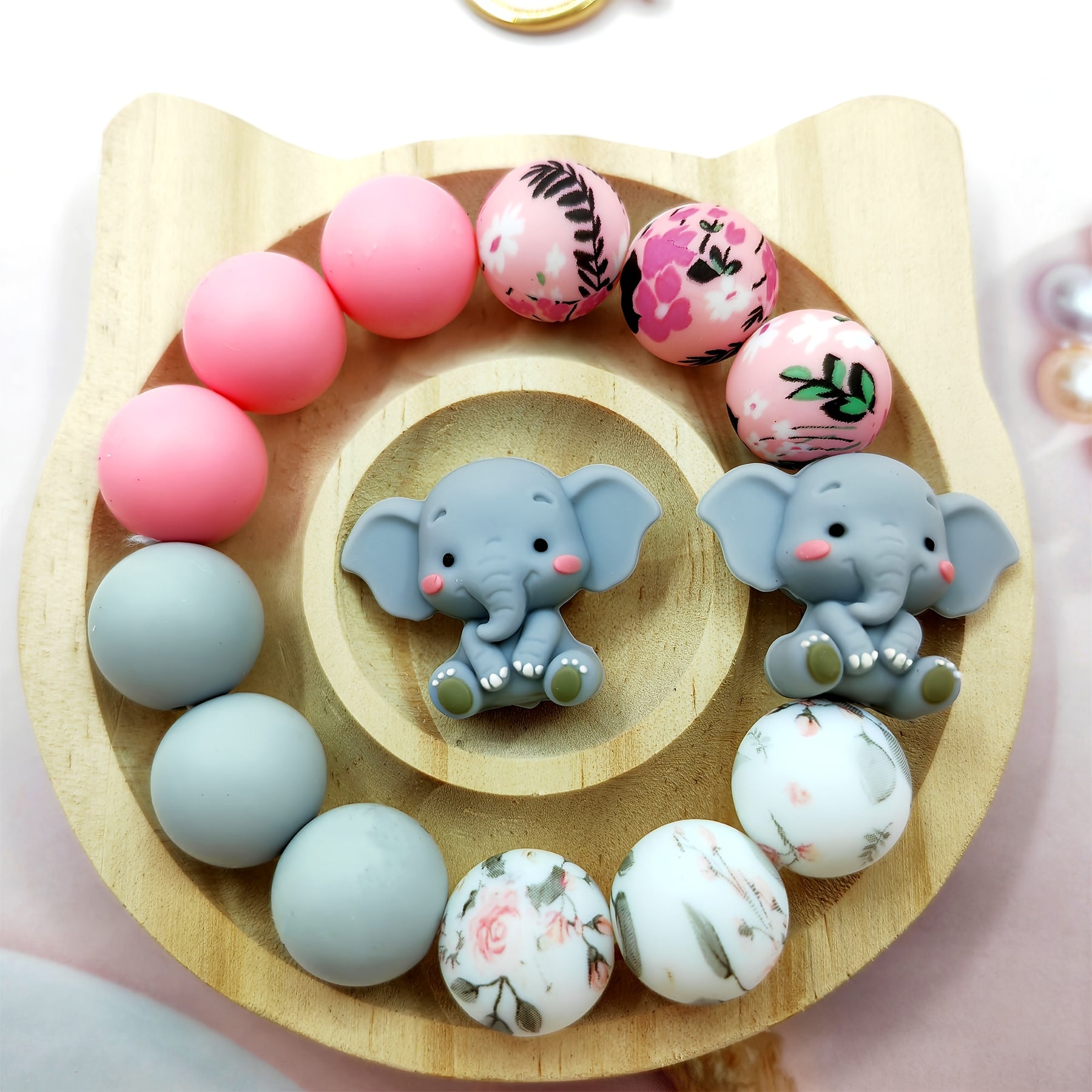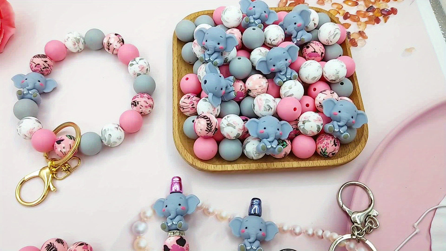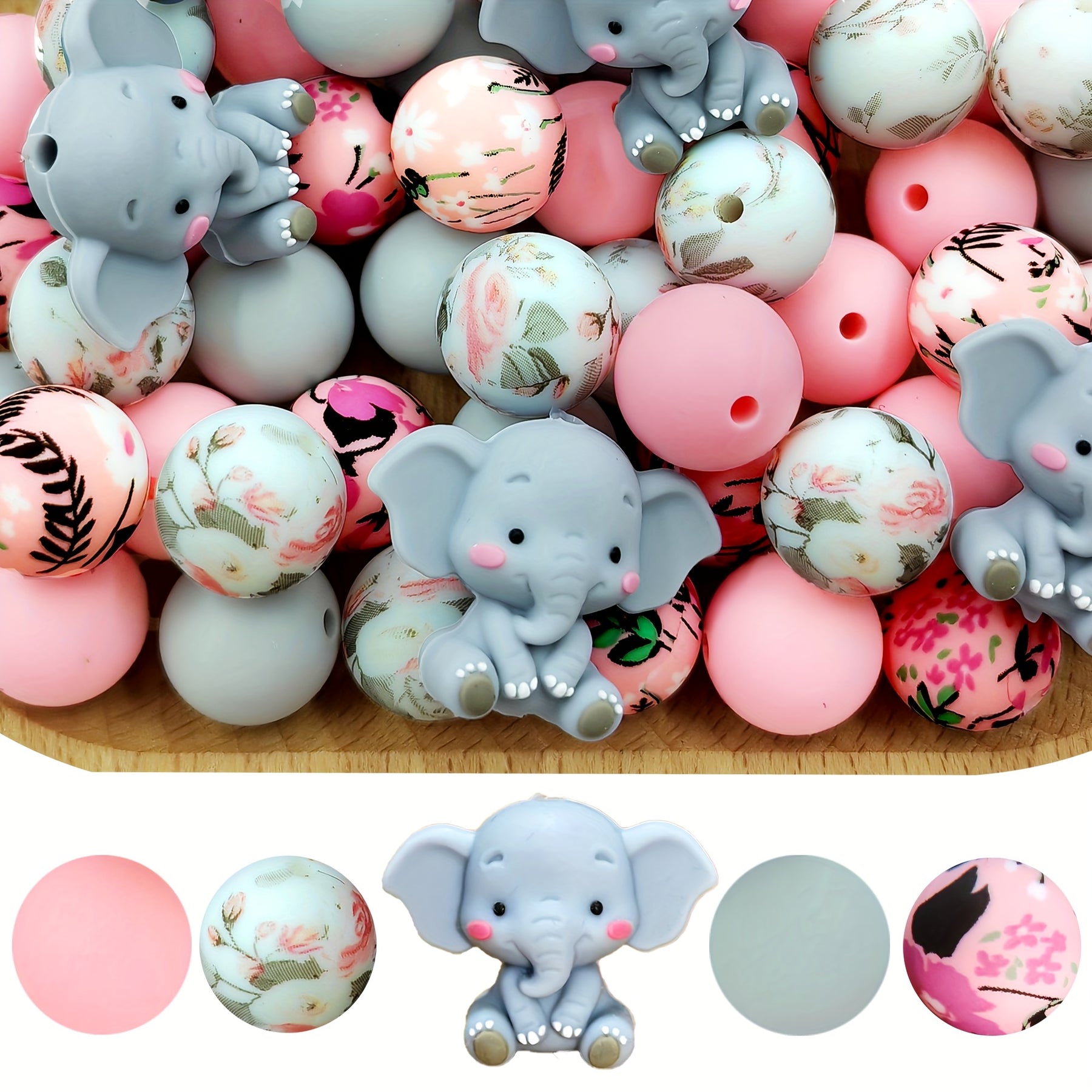 This set includes 25 3D elephant silicone beads in a mix of pink and gray colors. Perfect for creating unique jewelry pieces.