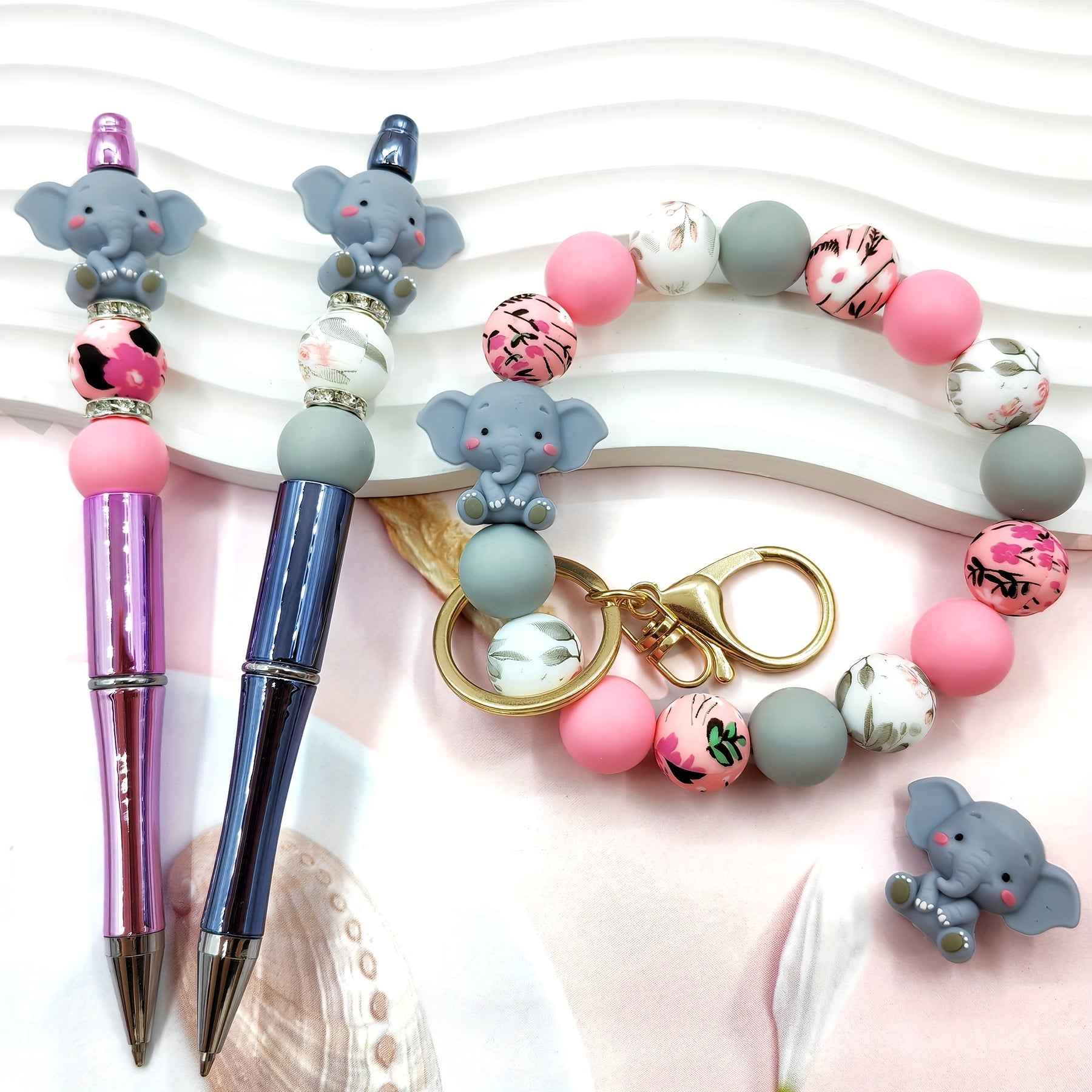 25pcs 3D Elephant Silicone Beads Pink Gray Elephant Jewelry