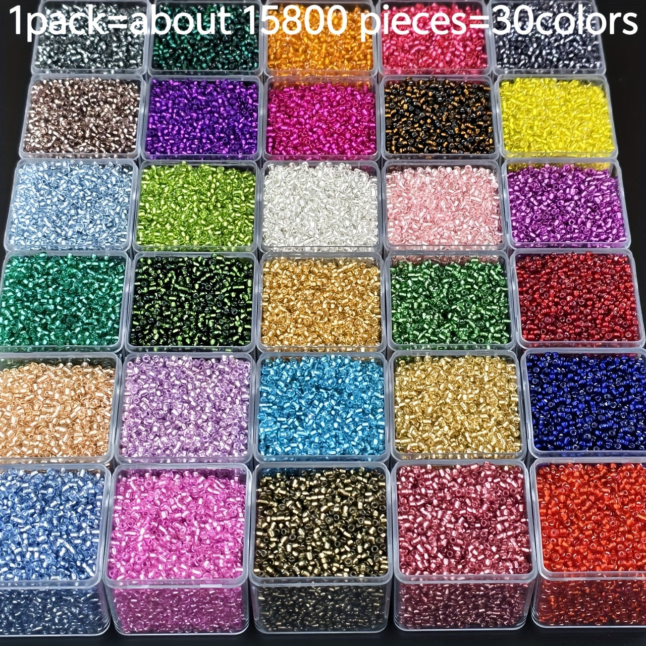 Get 15800pcs of 2mm silvery filled glass seed beads in 30 vibrant colors. Perfect for making summer friendship bracelets, necklaces, earrings, and various crafts.