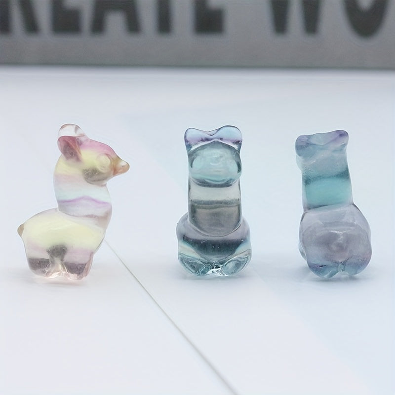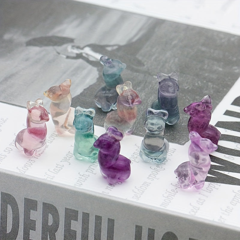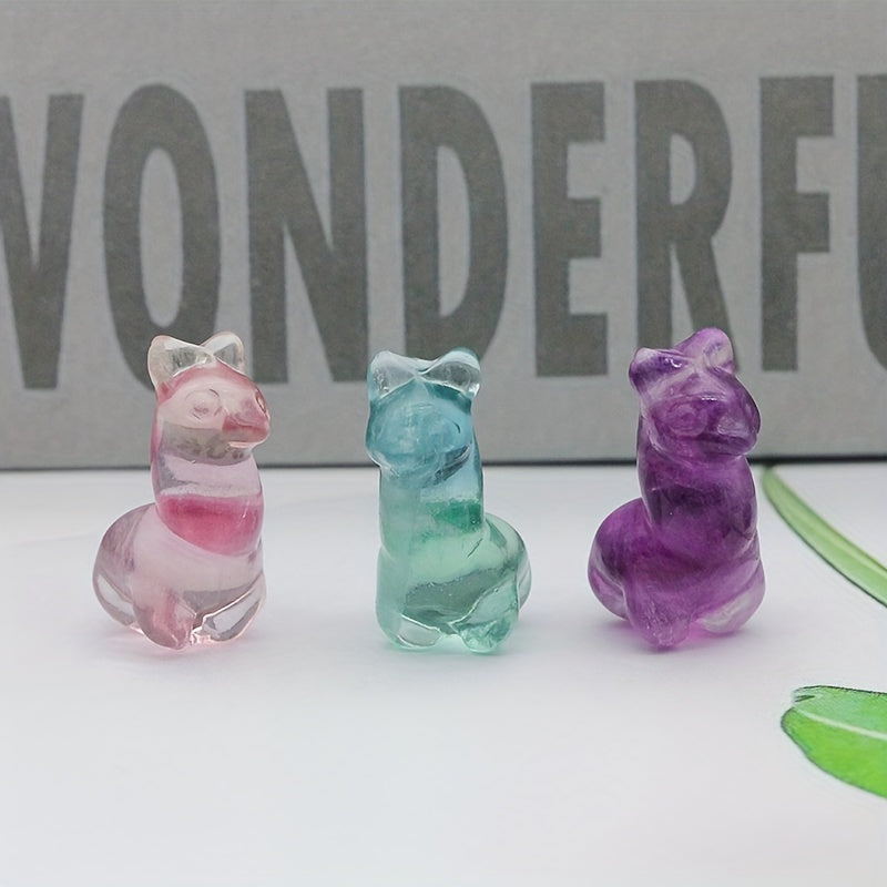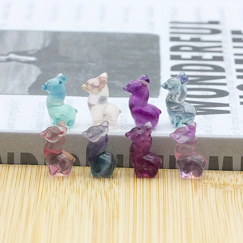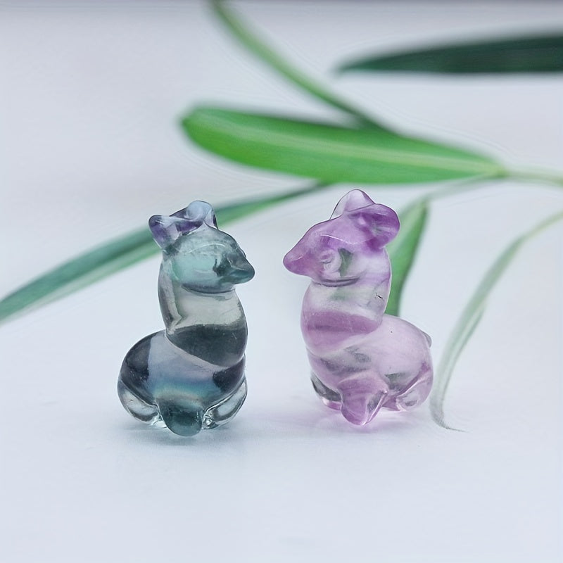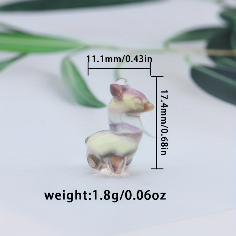 Add a touch of whimsical charm to your home with this set of 2 alpaca carvings made from rainbow fluorite. Perfect for Halloween or as a unique gift for a loved one.