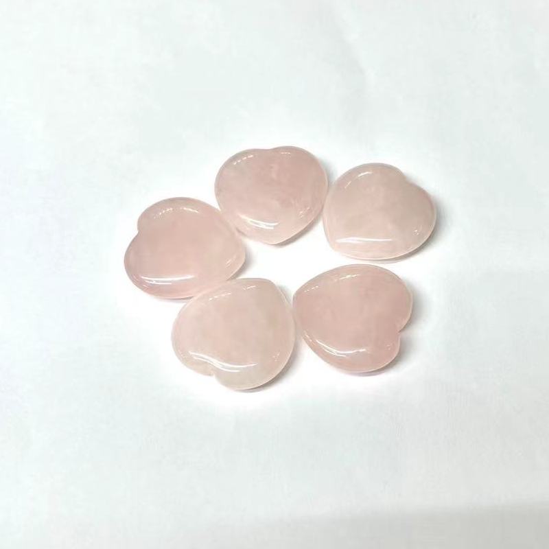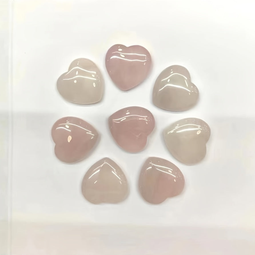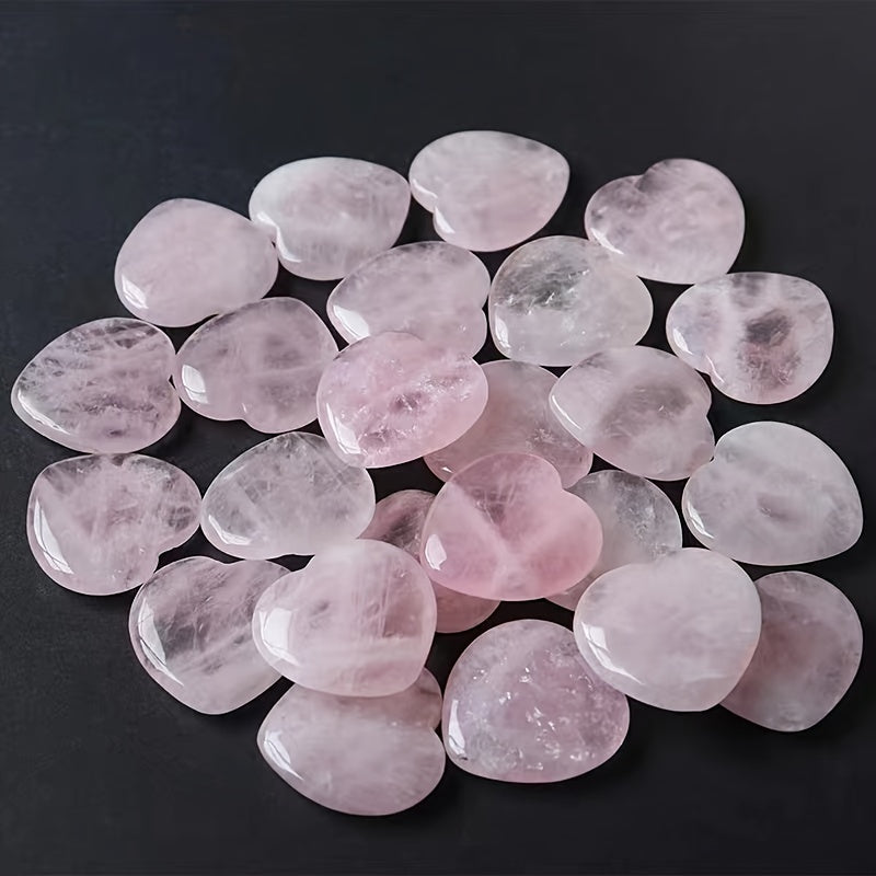 Set of 2 natural rose quartz heart shaped crystals with no holes, perfect for display or meditation.