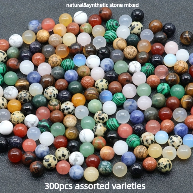 Create your own unique jewelry pieces with this set of 300 loose round beads. Perfect for making necklaces, bracelets, and earrings. A mix of natural and synthetic stone beads in various colors and textures.