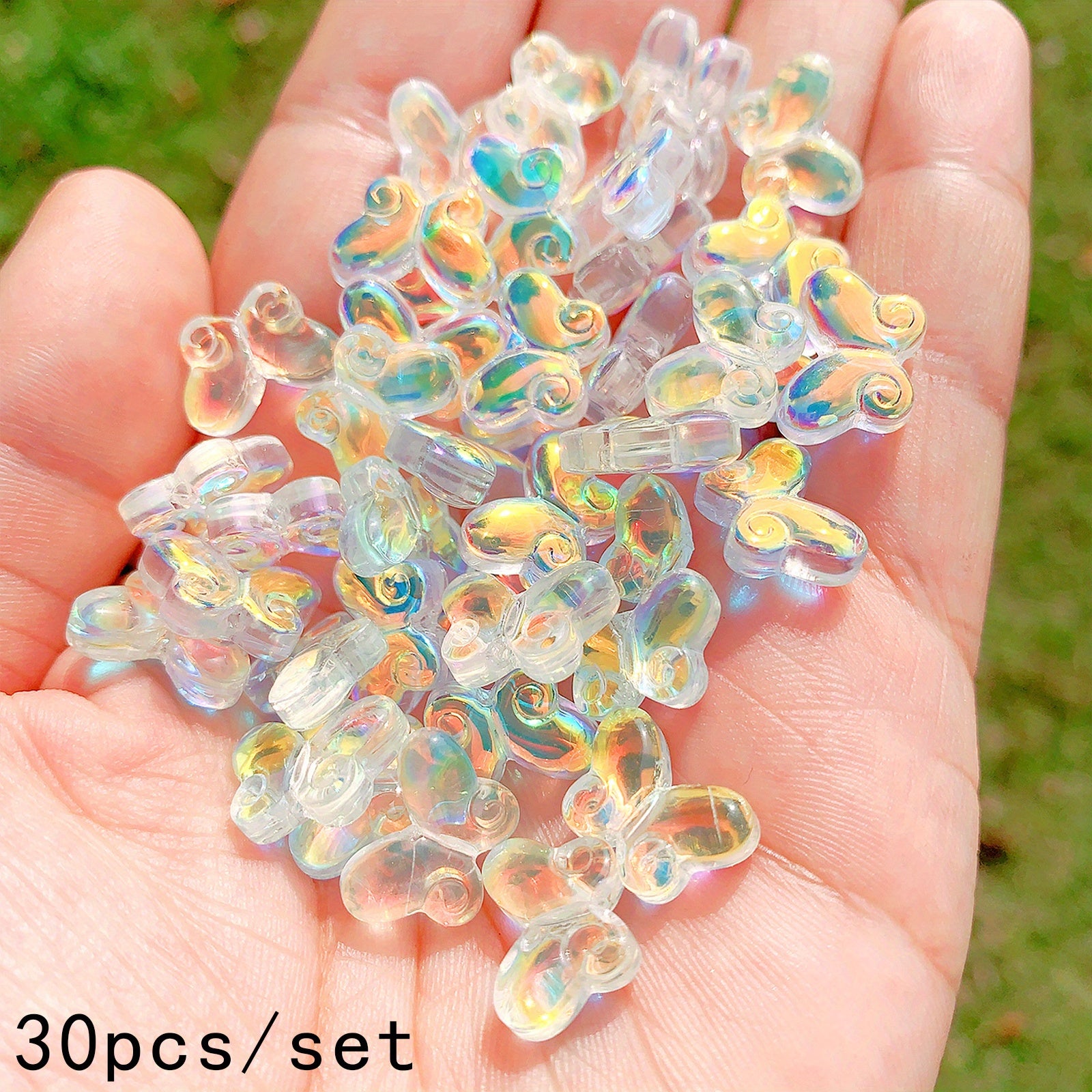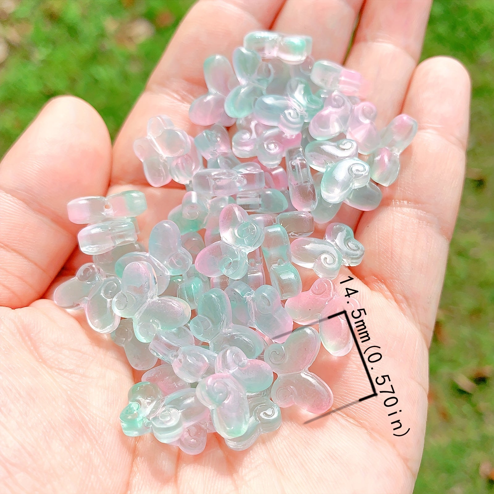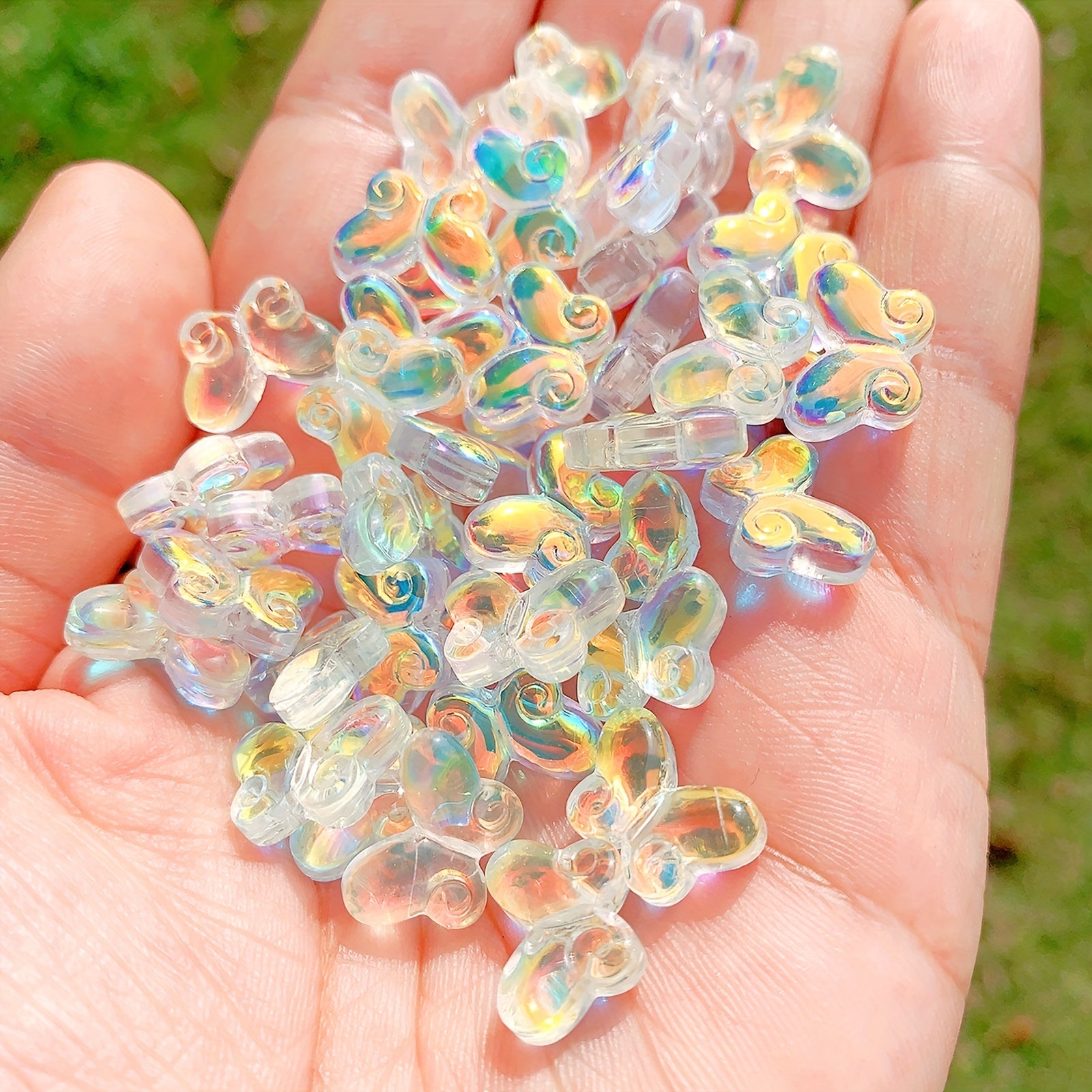 These transparent butterfly-shaped glass beads are perfect for creating your own unique jewelry pieces. Use them to design necklaces, bracelets, keychains, and more. Add a touch of elegance to your art and craft projects.