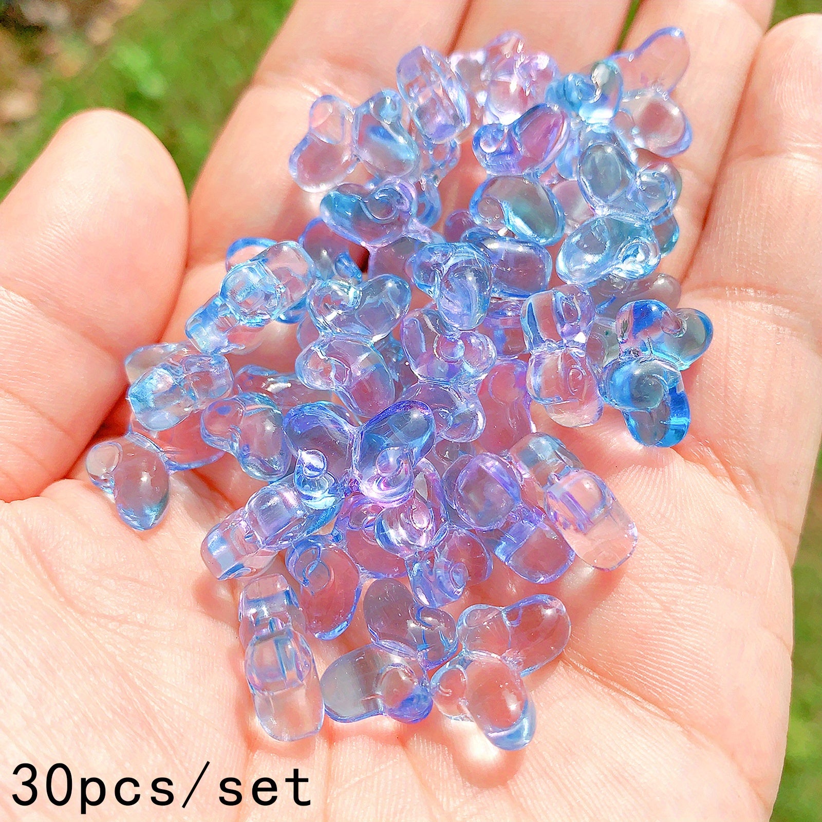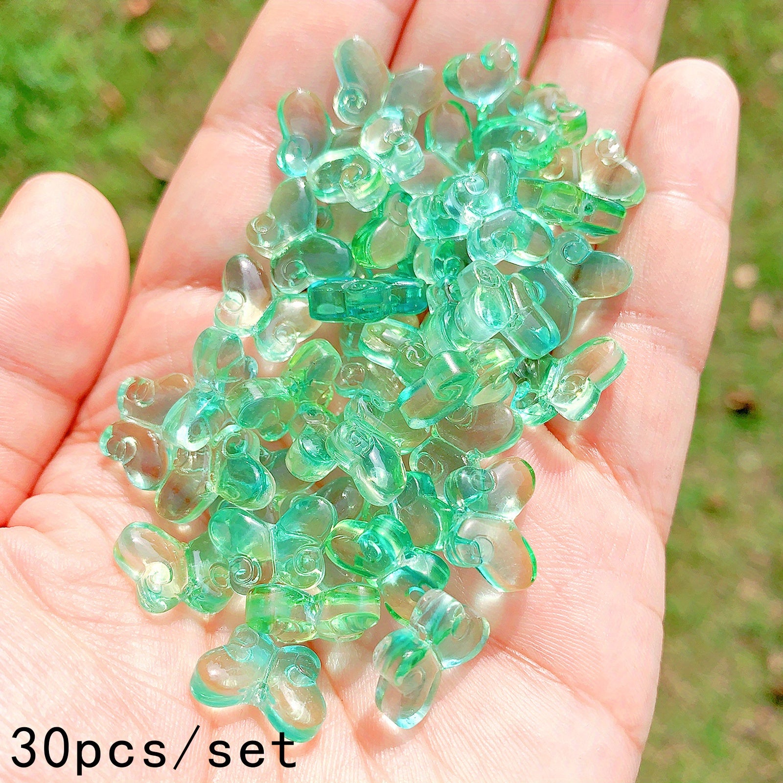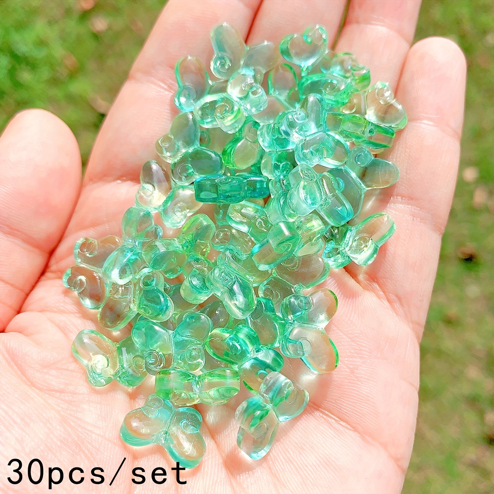 These transparent butterfly-shaped glass beads are perfect for creating your own unique jewelry pieces. Use them to design necklaces, bracelets, keychains, and more. Add a touch of elegance to your art and craft projects.