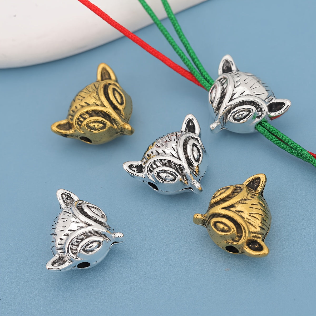 These vintage-style spacer beads feature a fox head shape design with embossed horizontal holes. Perfect for small animal-themed crafts.