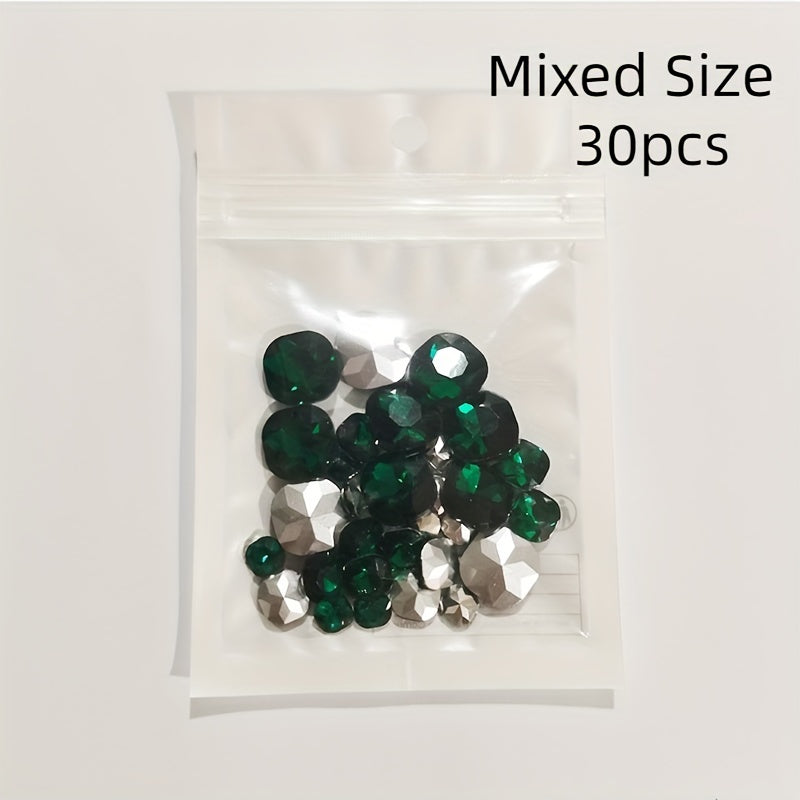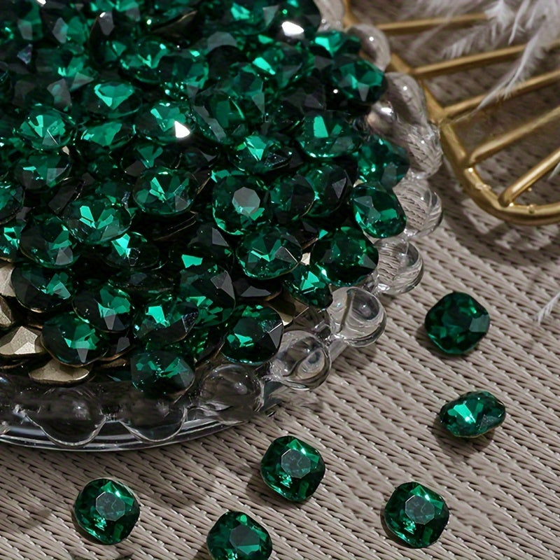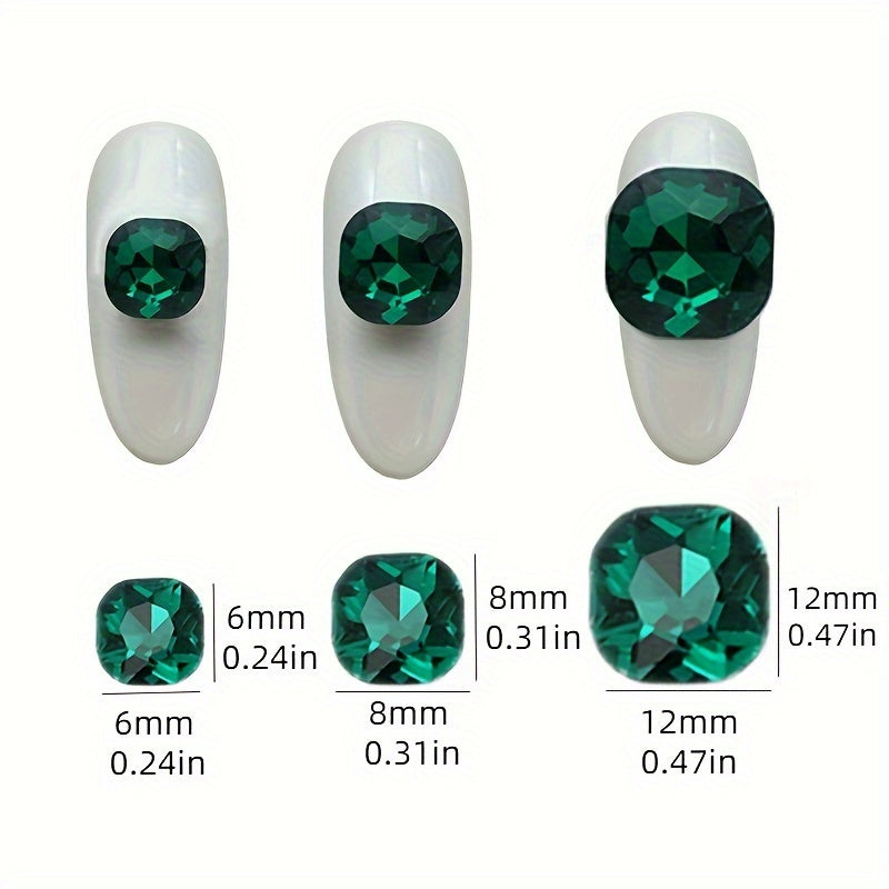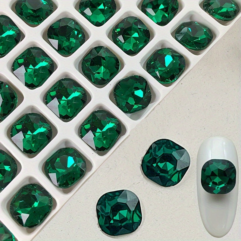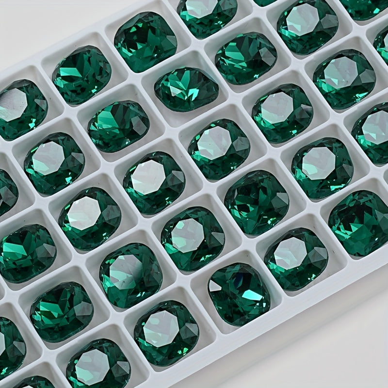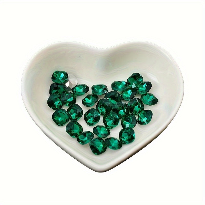This pack includes 30 synthetic emerald 3D square glass pendants with a pointed bottom, ideal for jewelry making and accessories.
