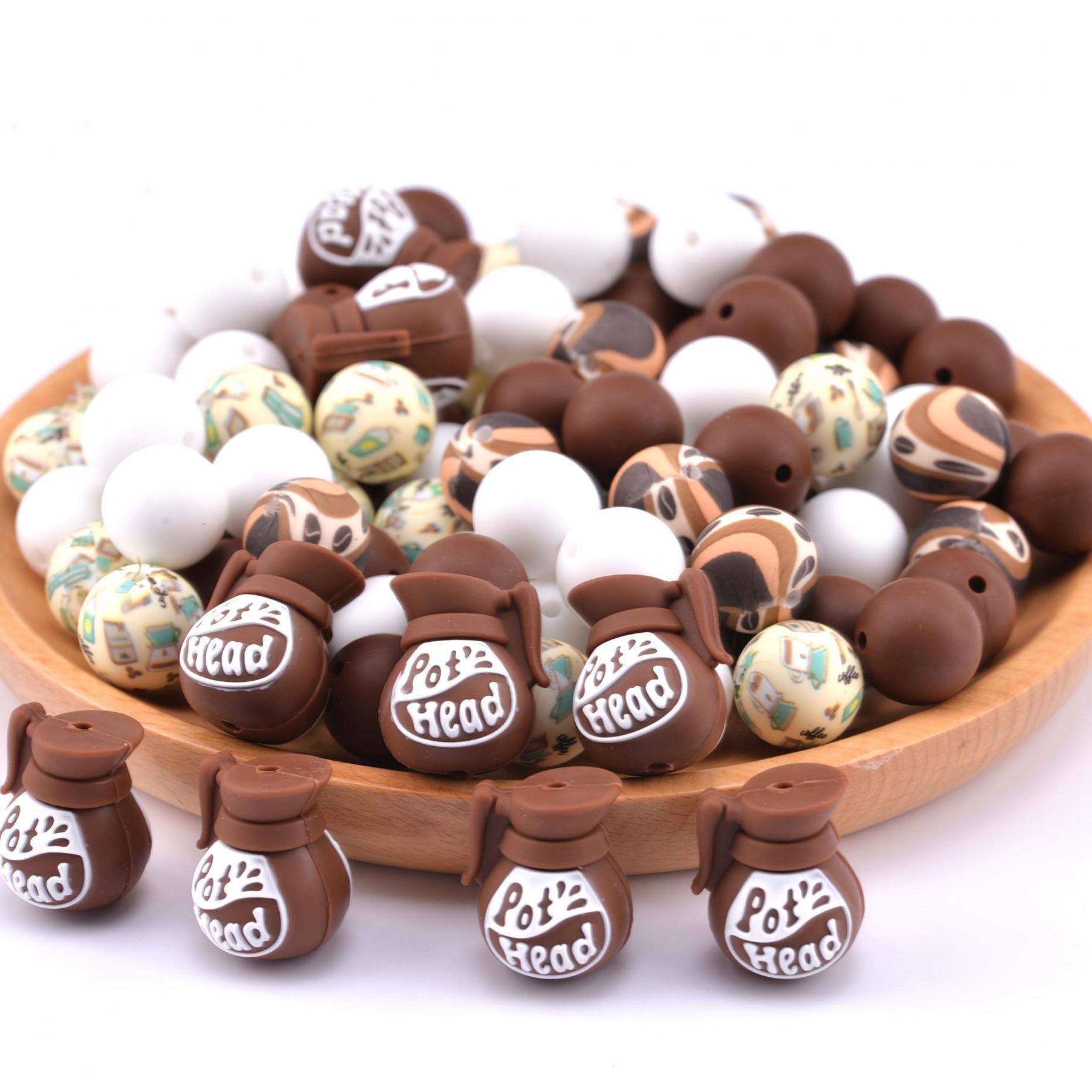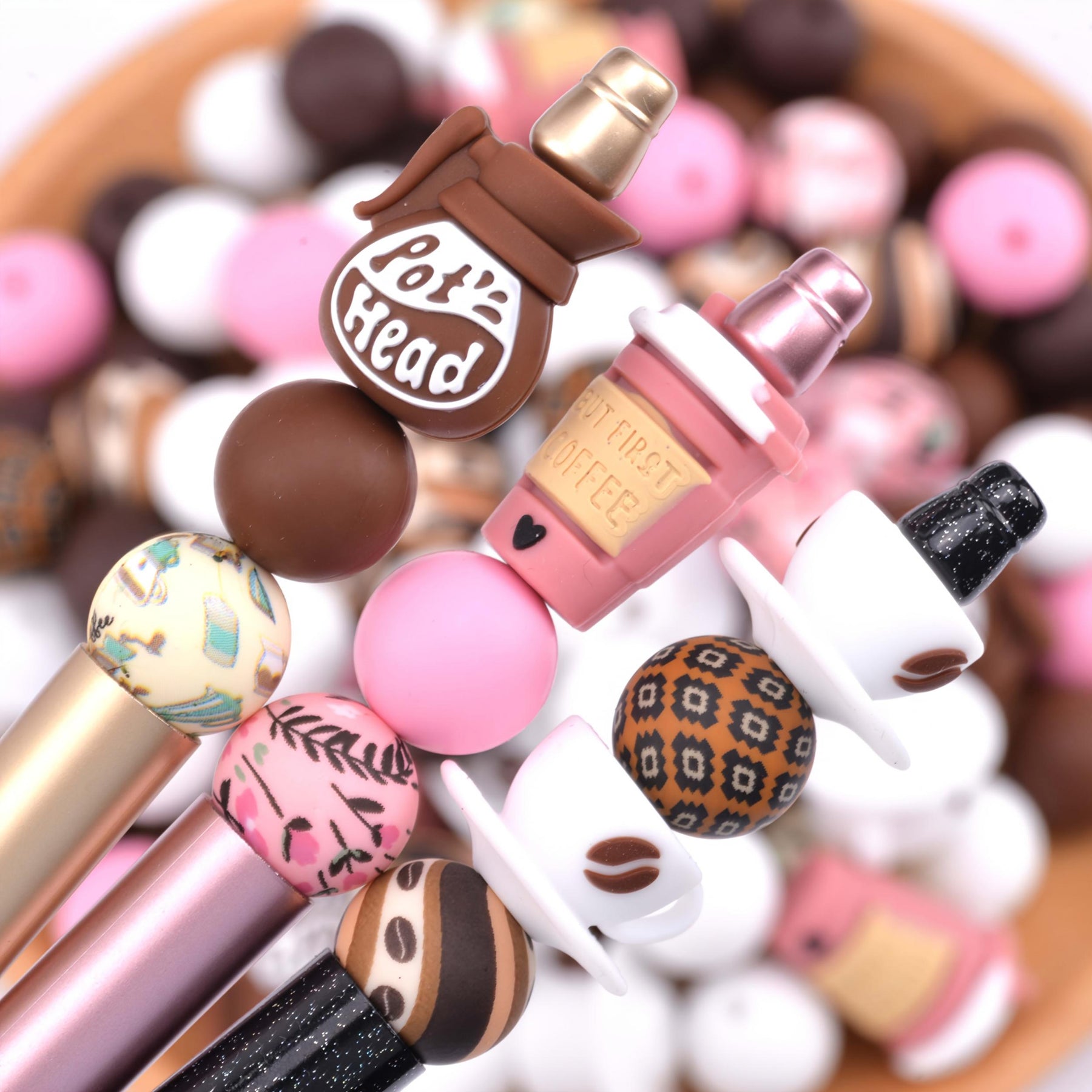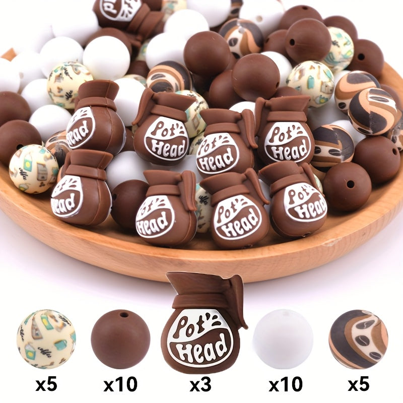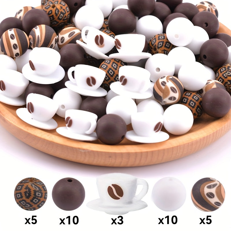 33pcs Coffee Themed Silicone Beads Set for Jewelry Decoration