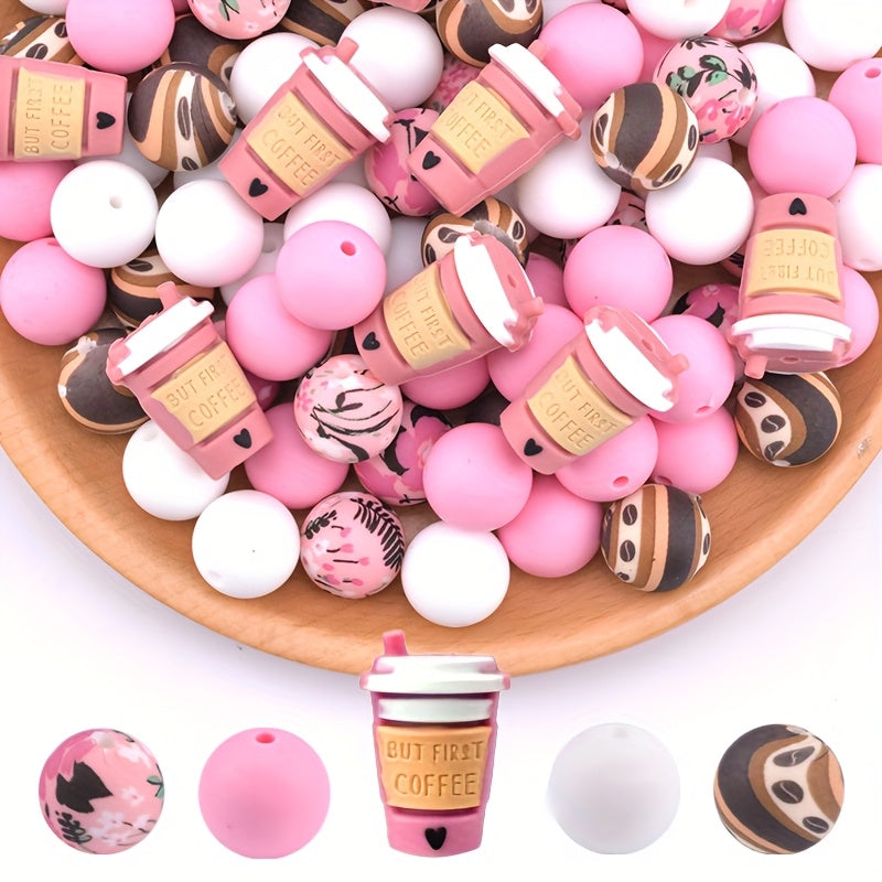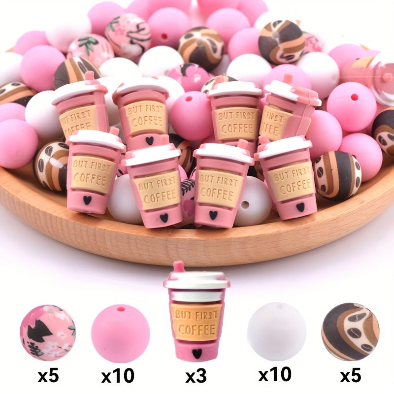 Explore creativity with this 33-piece set of coffee-themed silicone beads featuring coffee beans and coffee cups. Ideal for jewelry making and accessories.