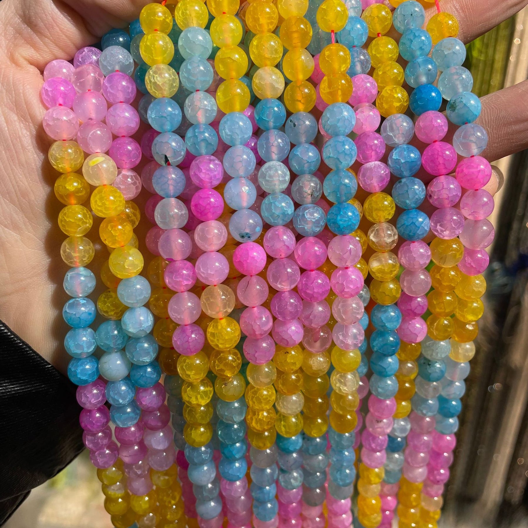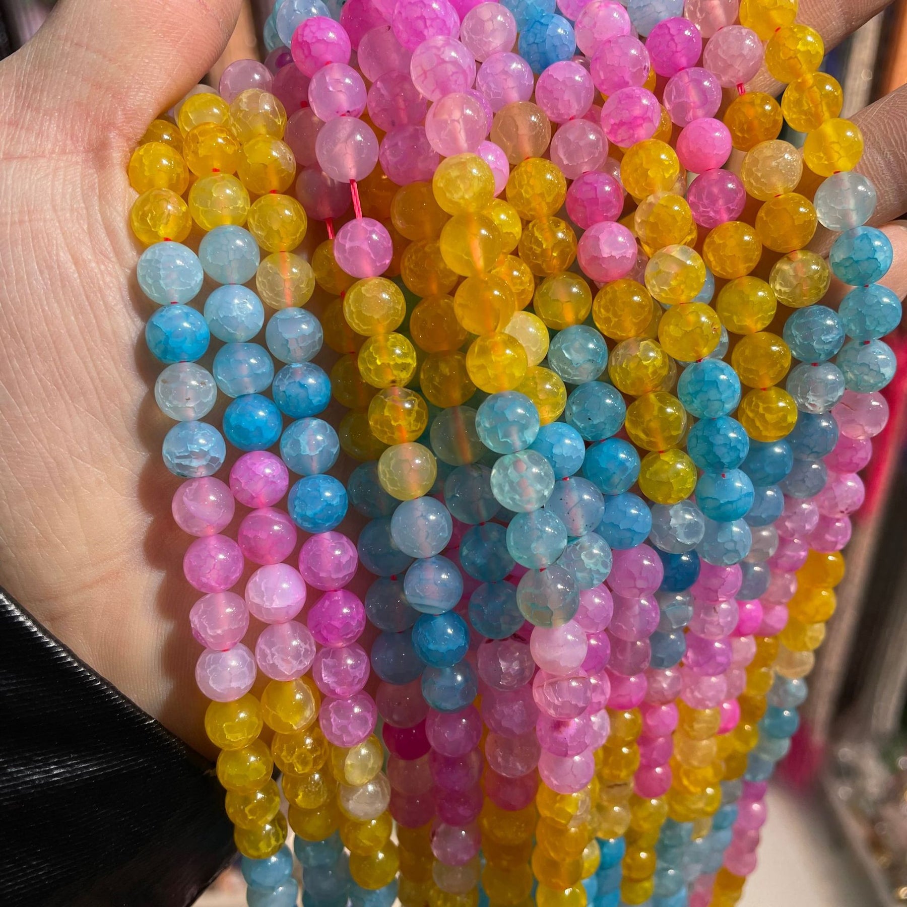 These beautiful gradient agate round beads are perfect for creating artificial jewelry such as necklaces, earrings, and bracelets. Each pack contains 36, 46, or 60 beads in assorted colors.